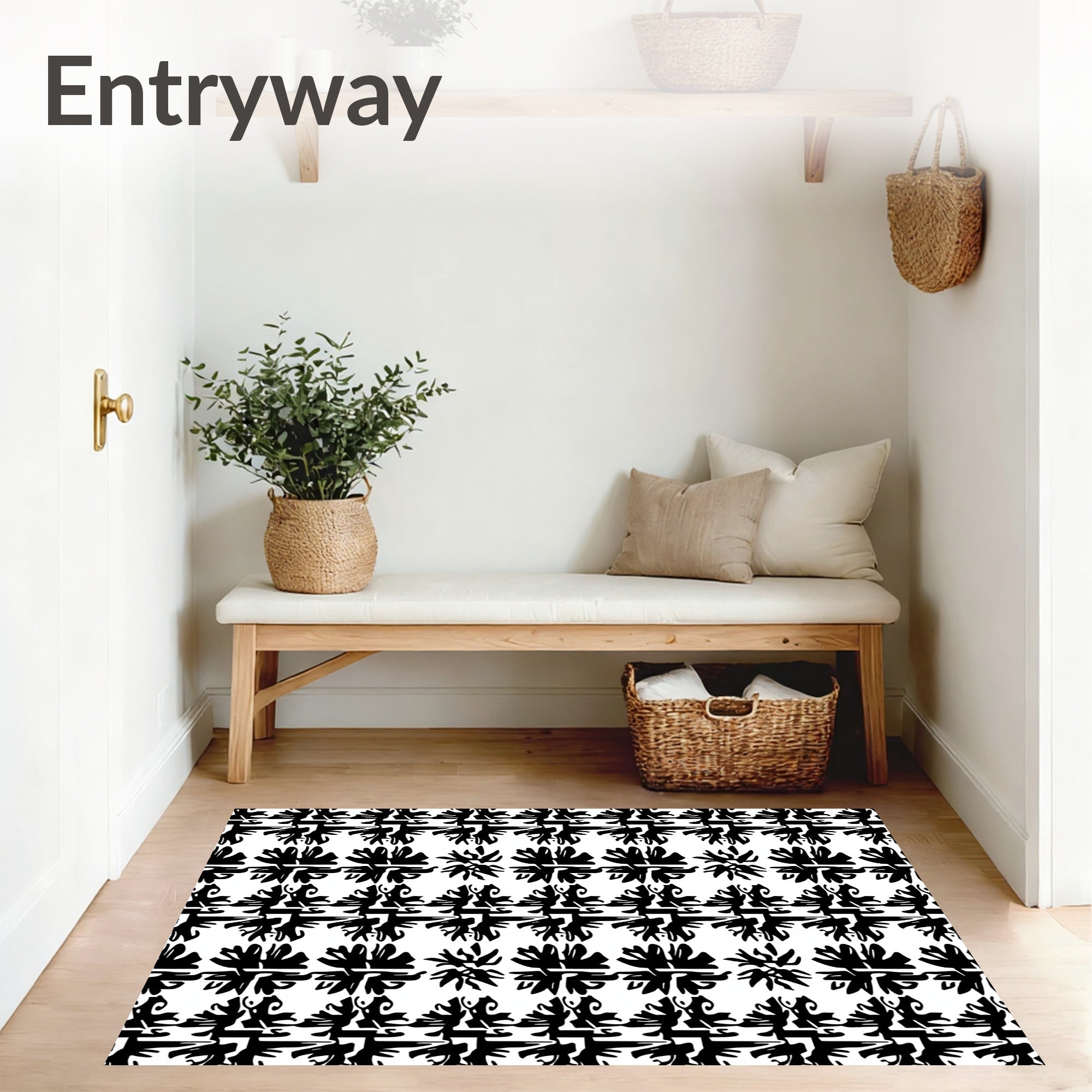 Flatwoven High Traffic Area Rug, Spooky Monochrome Autumn Celebration Festive Seasonal Delight, Non Slip, Stain Resistant, Washable Area Rugs for Living Room, Bedroom (Black) Overview: