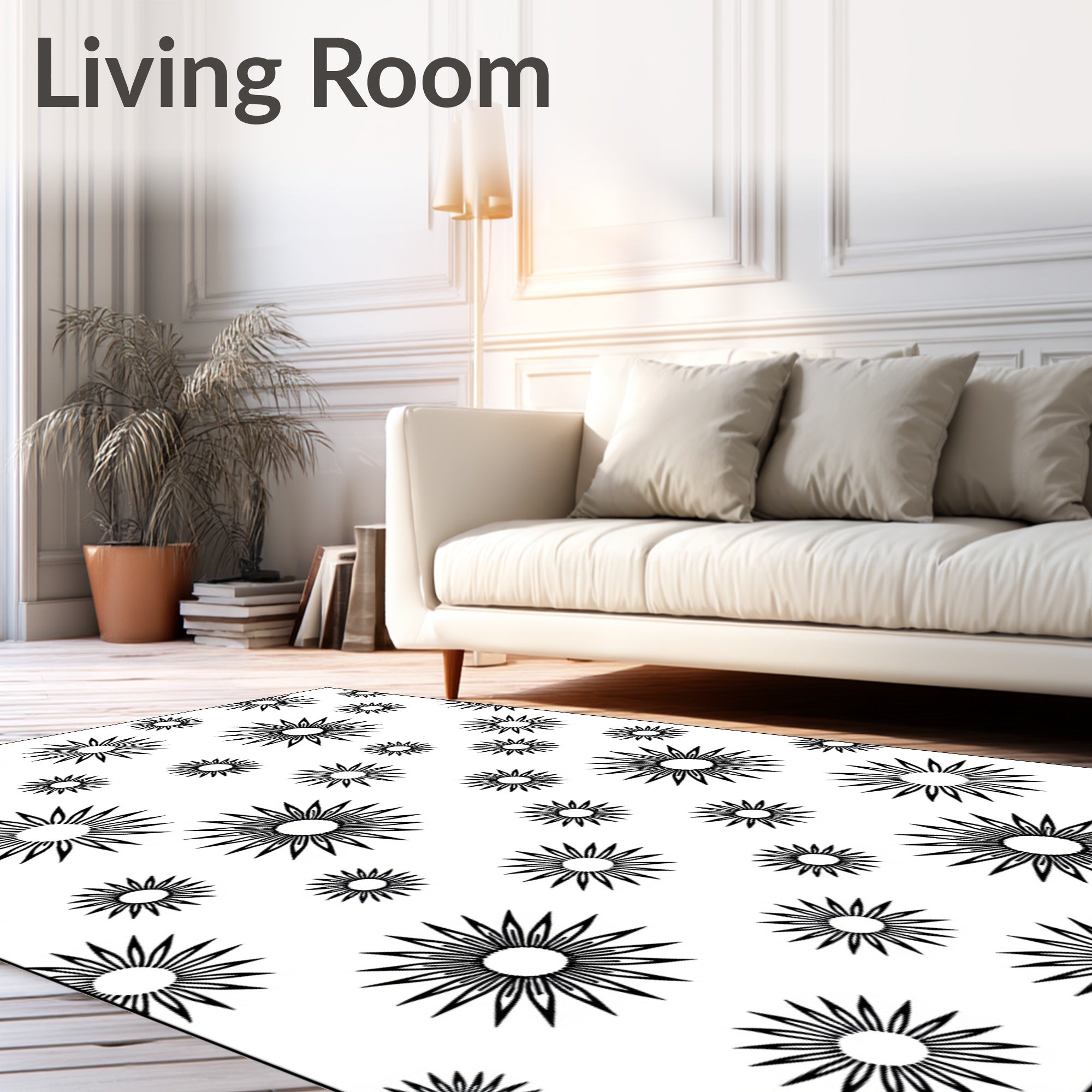 Flatwoven High Traffic Area Rug, Starburst Explosion Motif Comfort Floor Treatment, Non Slip, Stain Resistant, Washable Area Rugs for Living Room, Bedroom (Black) Overview: