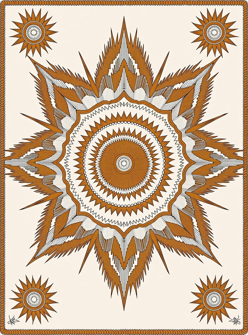 Starburst Motif Floor Covering Artisan Crafted with Rope Edge Detail (Brown)