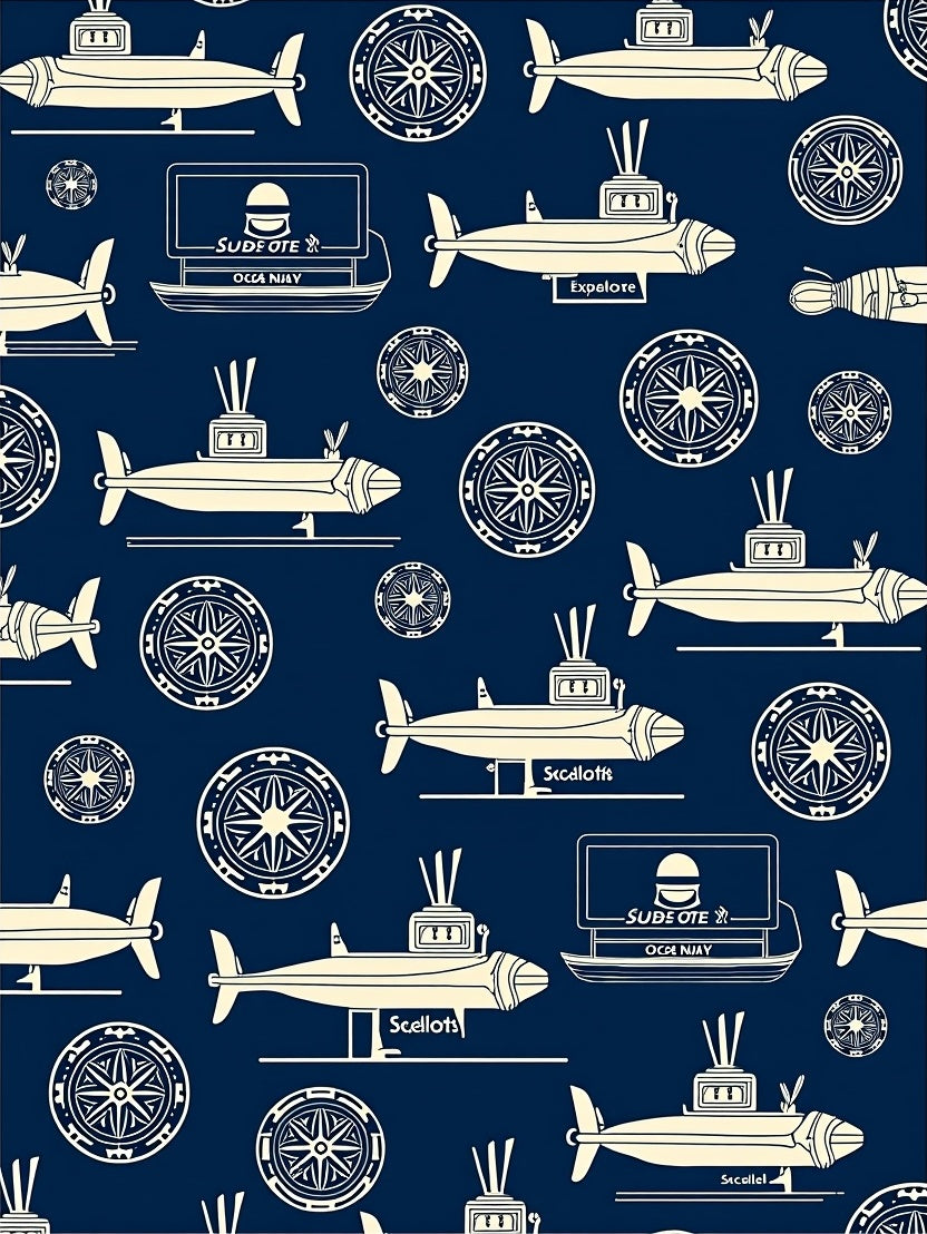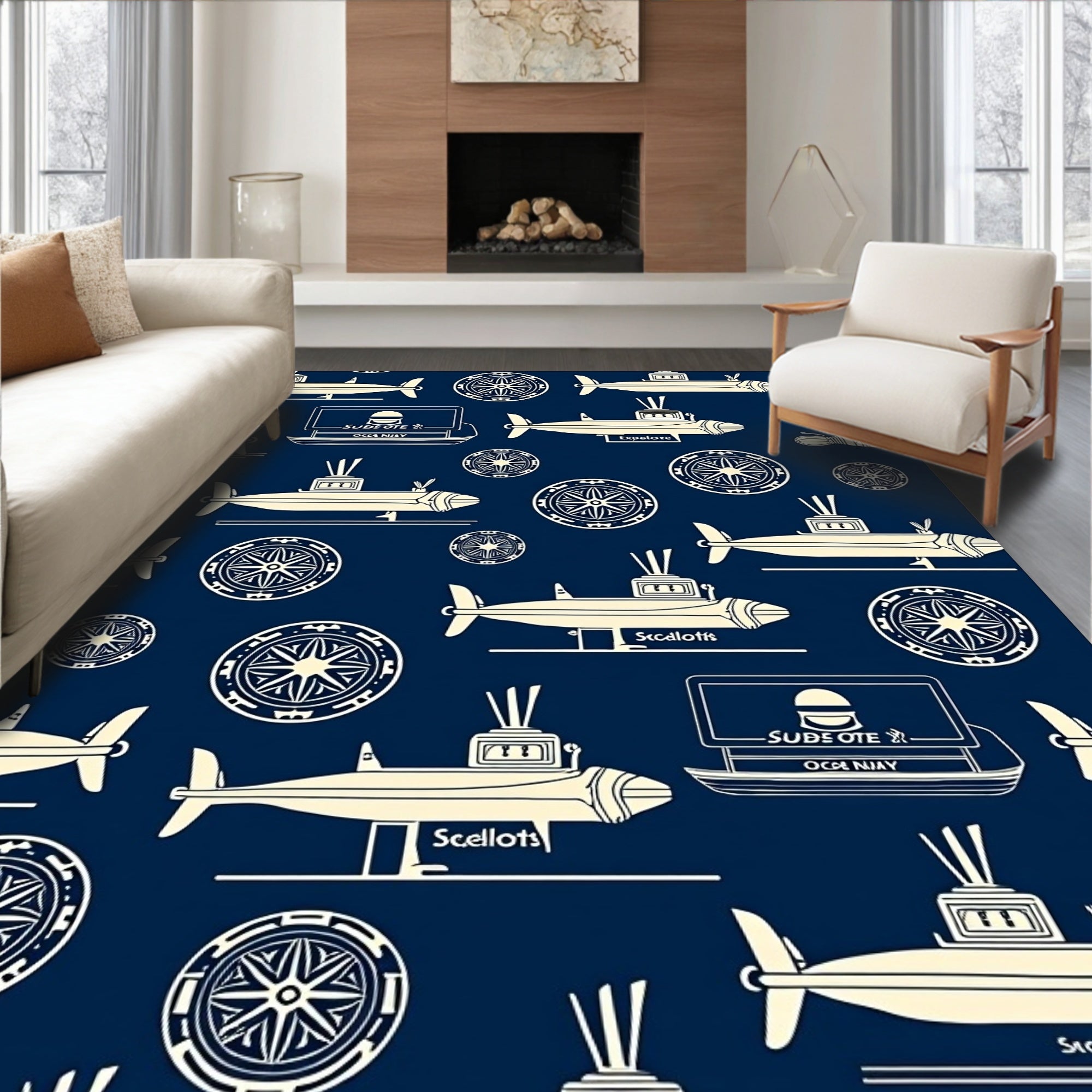 Flatwoven High Traffic Area Rug, Submarine Ocean Explorer with Treasure Map Adventure, Non Slip, Stain Resistant, Washable Area Rugs for Living Room, Bedroom (Blue) Overview: