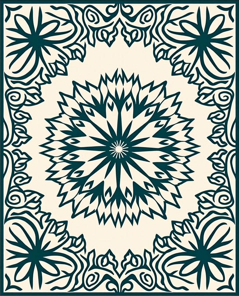 Sunburst Motif with Interlocking Petal Details and Subtle Vine Accents (Ivory)
