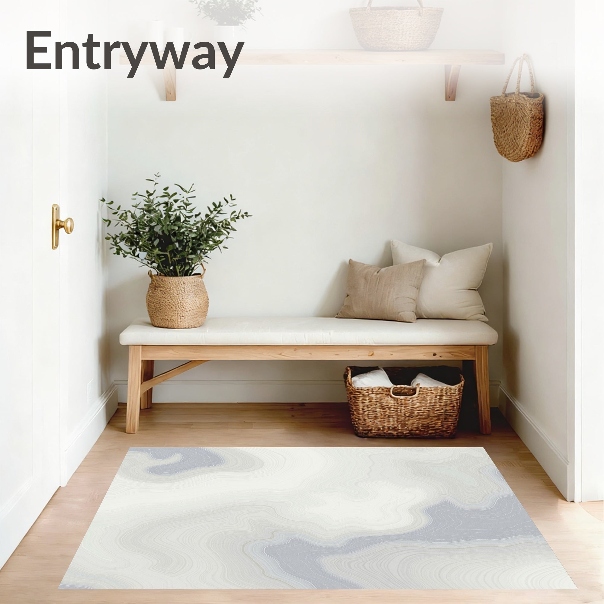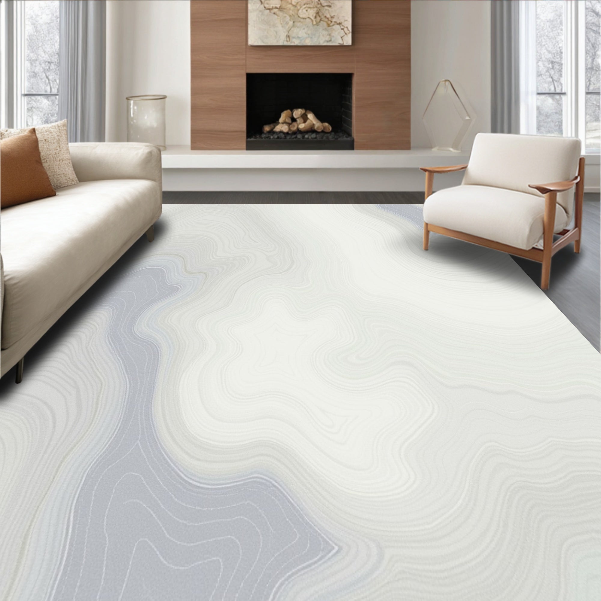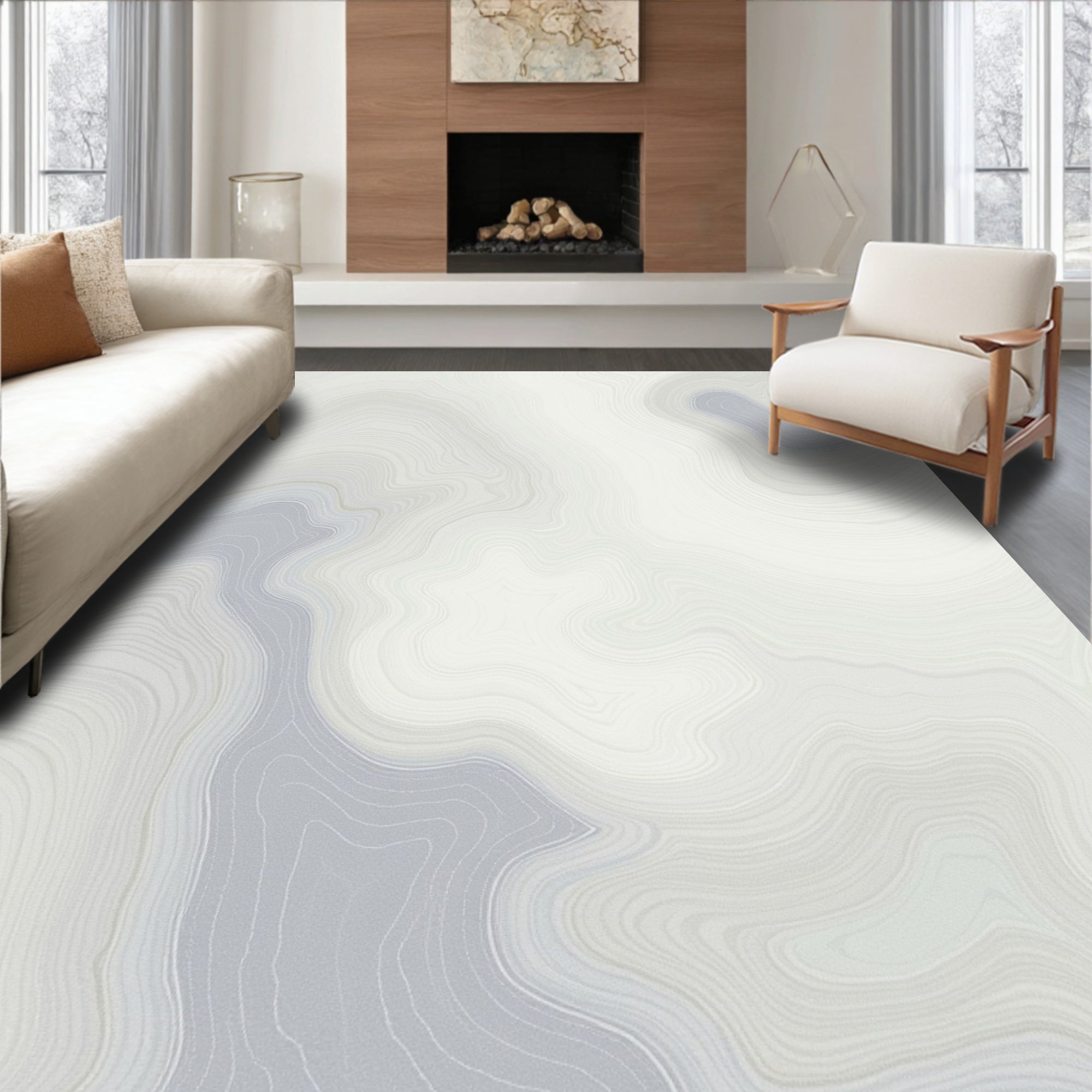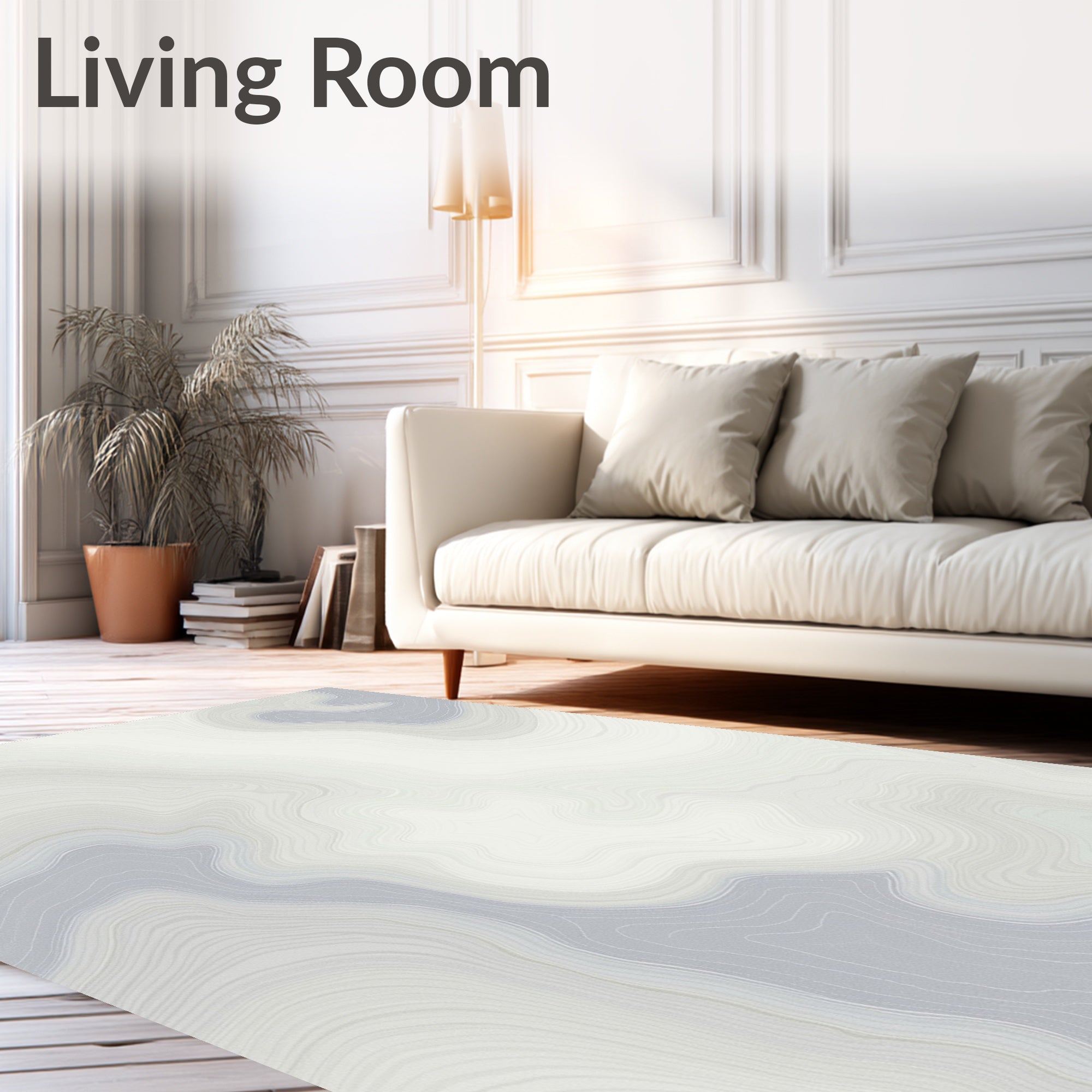 Flatwoven High Traffic Area Rug, Swirled Gradient Tie Dye with Flowing Cloud Like Design, Non Slip, Stain Resistant, Washable Area Rugs for Living Room, Bedroom (White) Overview: