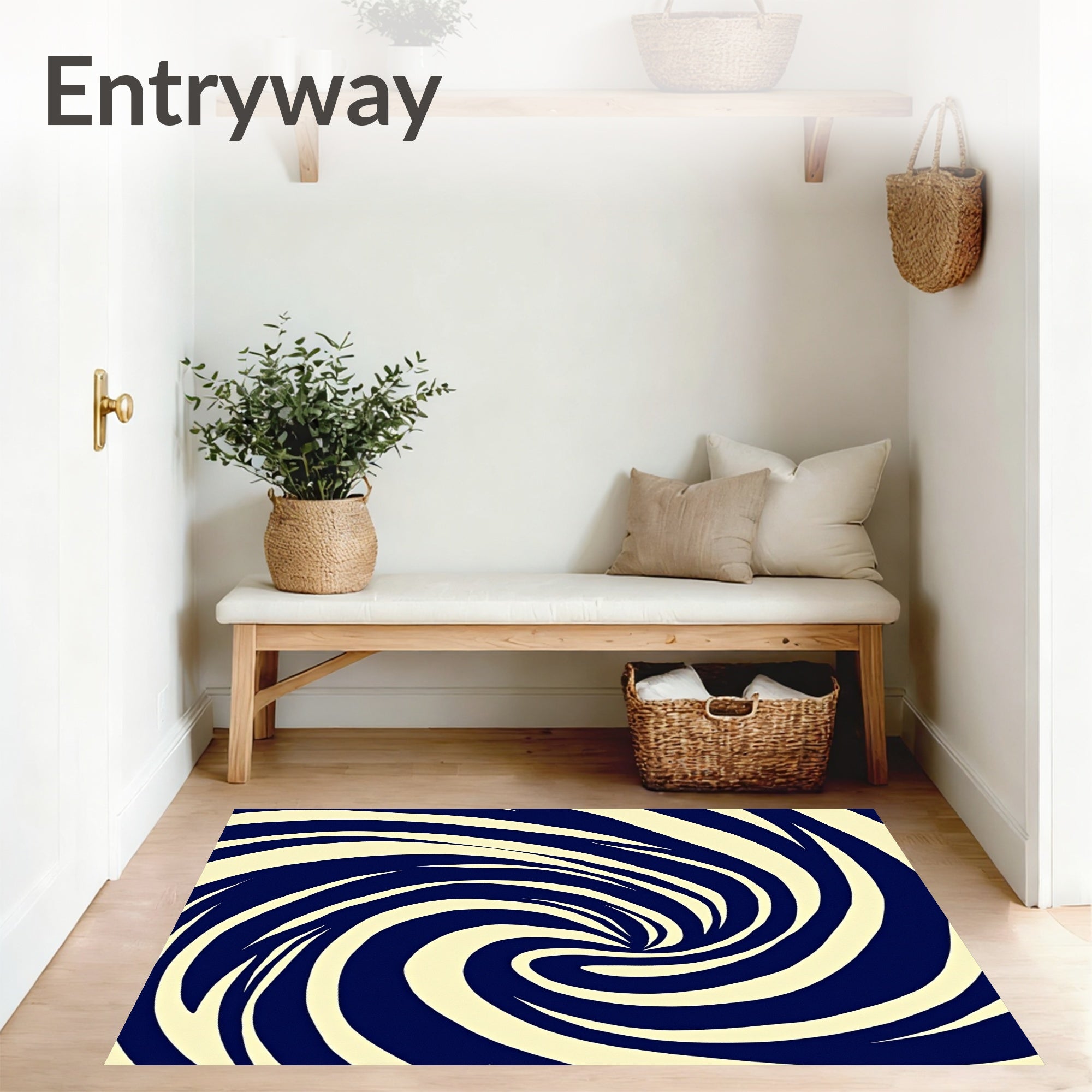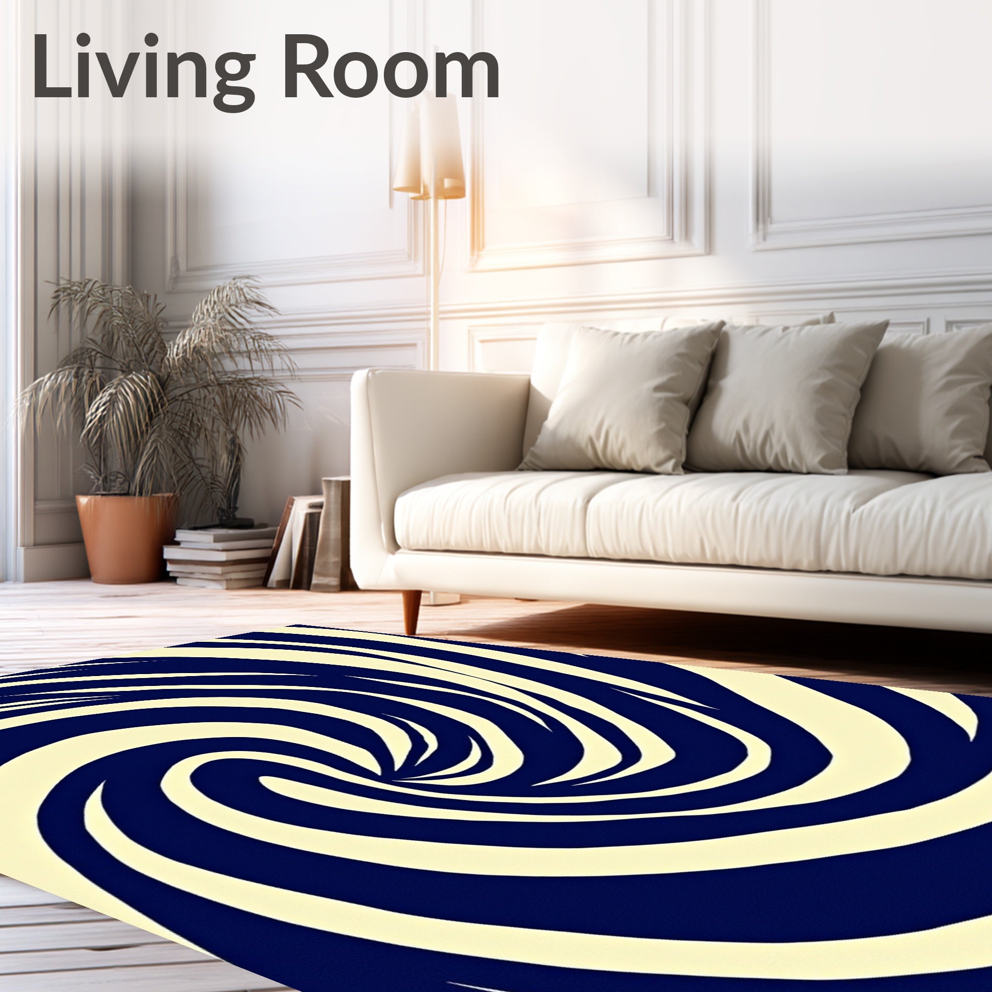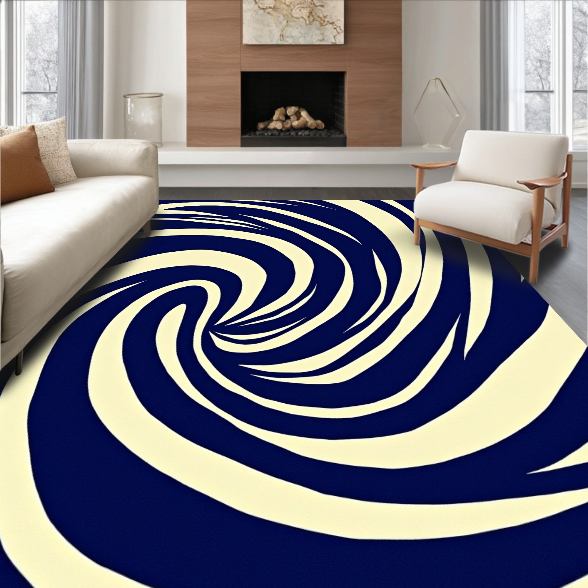 Flatwoven High Traffic Area Rug, Swirling Vortex Contemporary Design Modern Boho, Non Slip, Stain Resistant, Washable Area Rugs for Living Room, Bedroom (Blue) Overview: