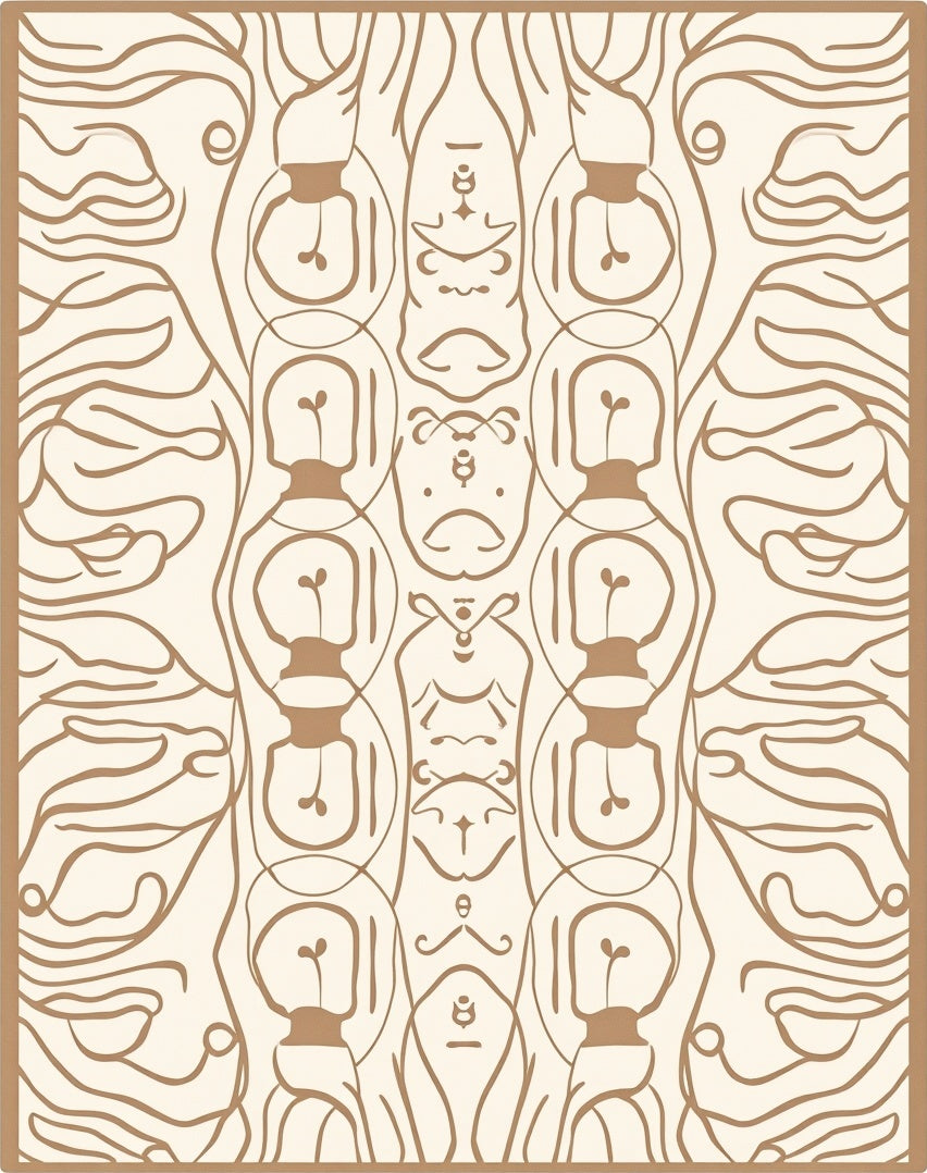Symmetrical Interlocking Waves with Paw Print Accents (Beige)