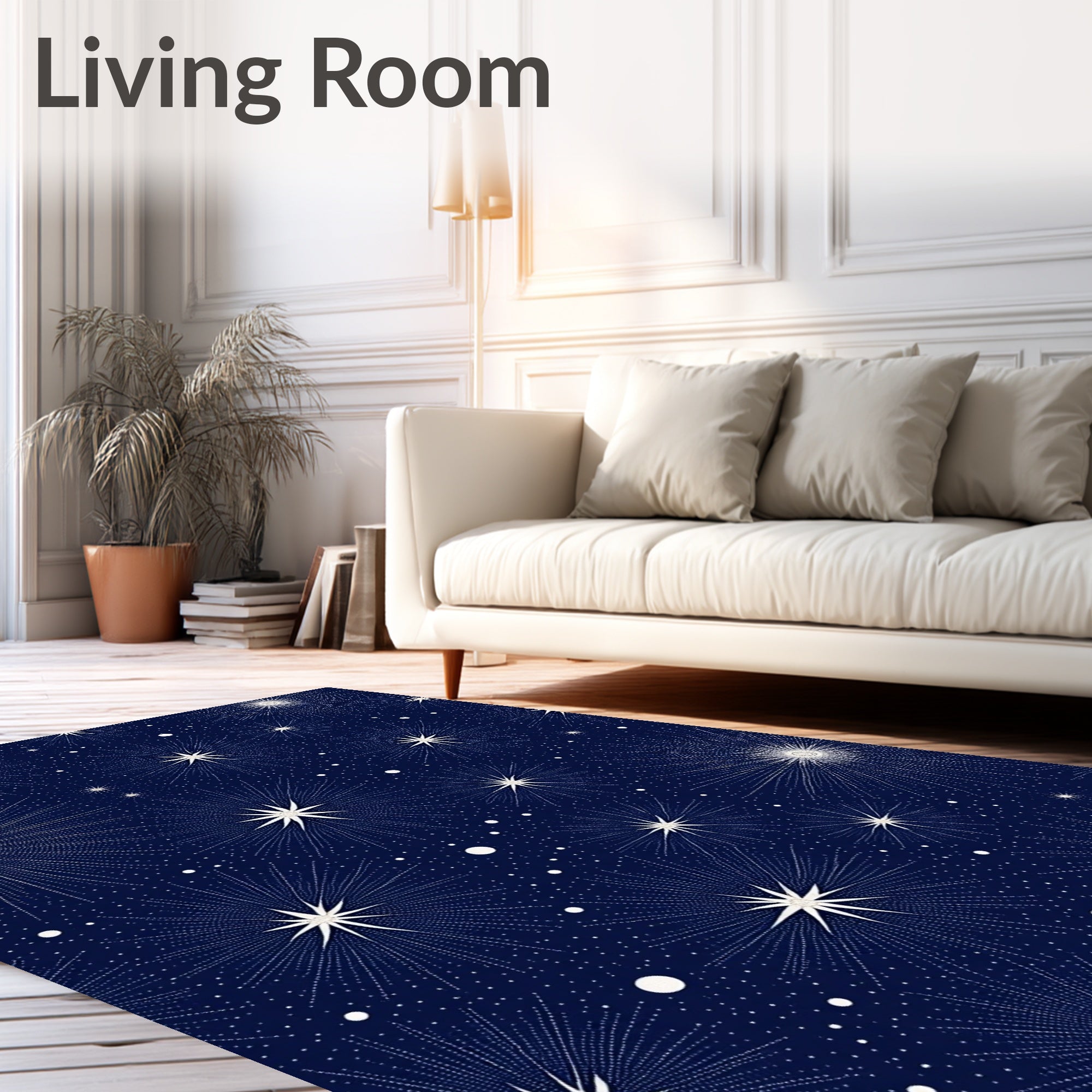 Flatwoven High Traffic Area Rug, Textured Constellation Map with Scattered Formations, Non Slip, Stain Resistant, Washable Area Rugs for Living Room, Bedroom (Blue) Overview: