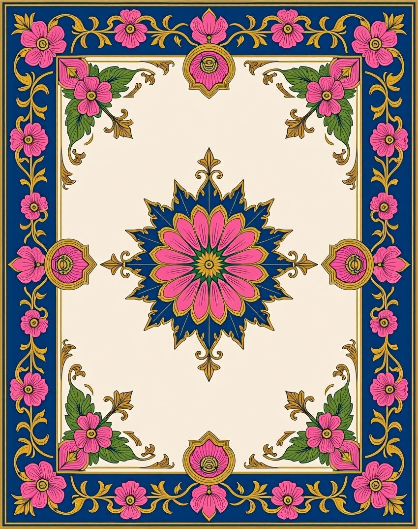 Flatwoven High Traffic Area Rug, Throw with Victorian Era Inspired Floral Medallions, Non Slip, Stain Resistant, Washable Area Rugs for Living Room, Bedroom (Pink) Overview: