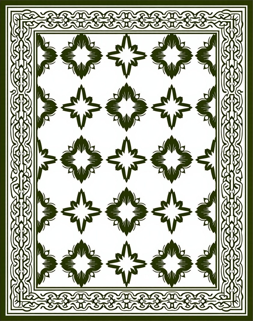 Flatwoven High Traffic Area Rug, Tile Inspired Quatrefoil Motif Fuzzy Shag, Non Slip, Stain Resistant, Washable Area Rugs for Living Room, Bedroom (Green) Overview: