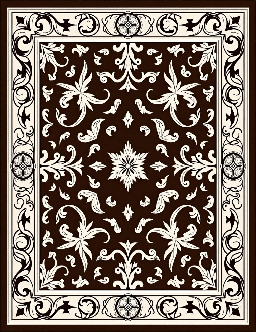 Traditional Damask Scroll with Baroque Inspired Motifs (Brown)