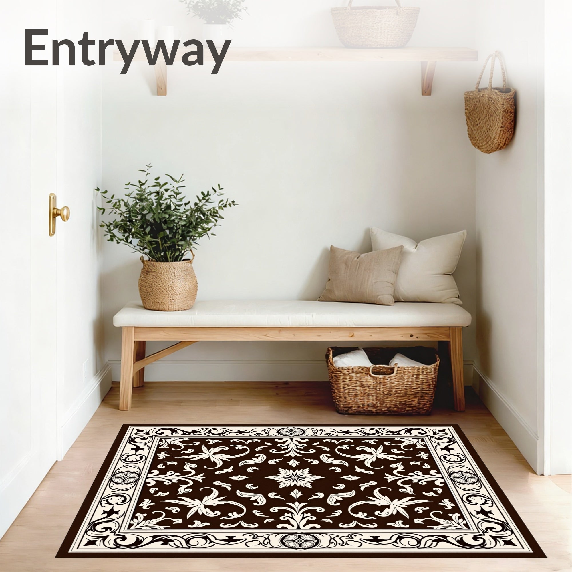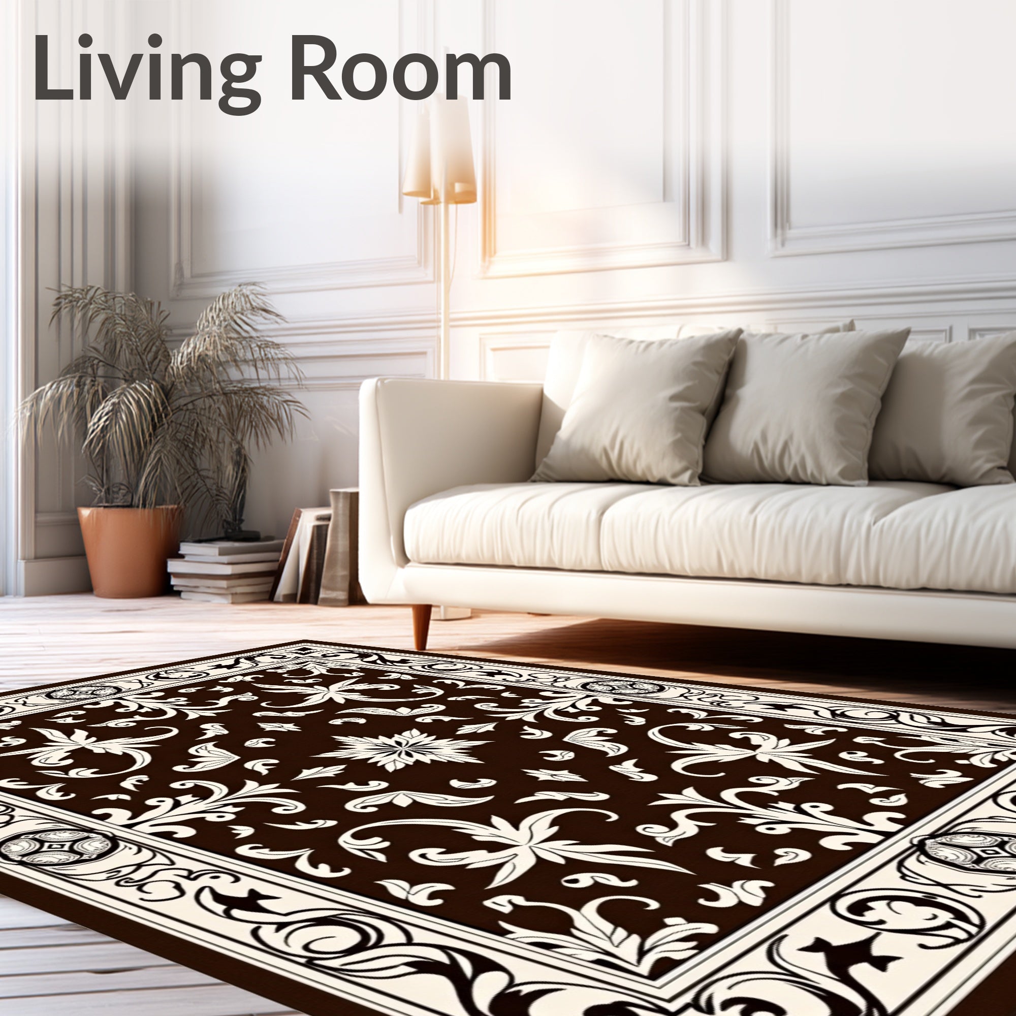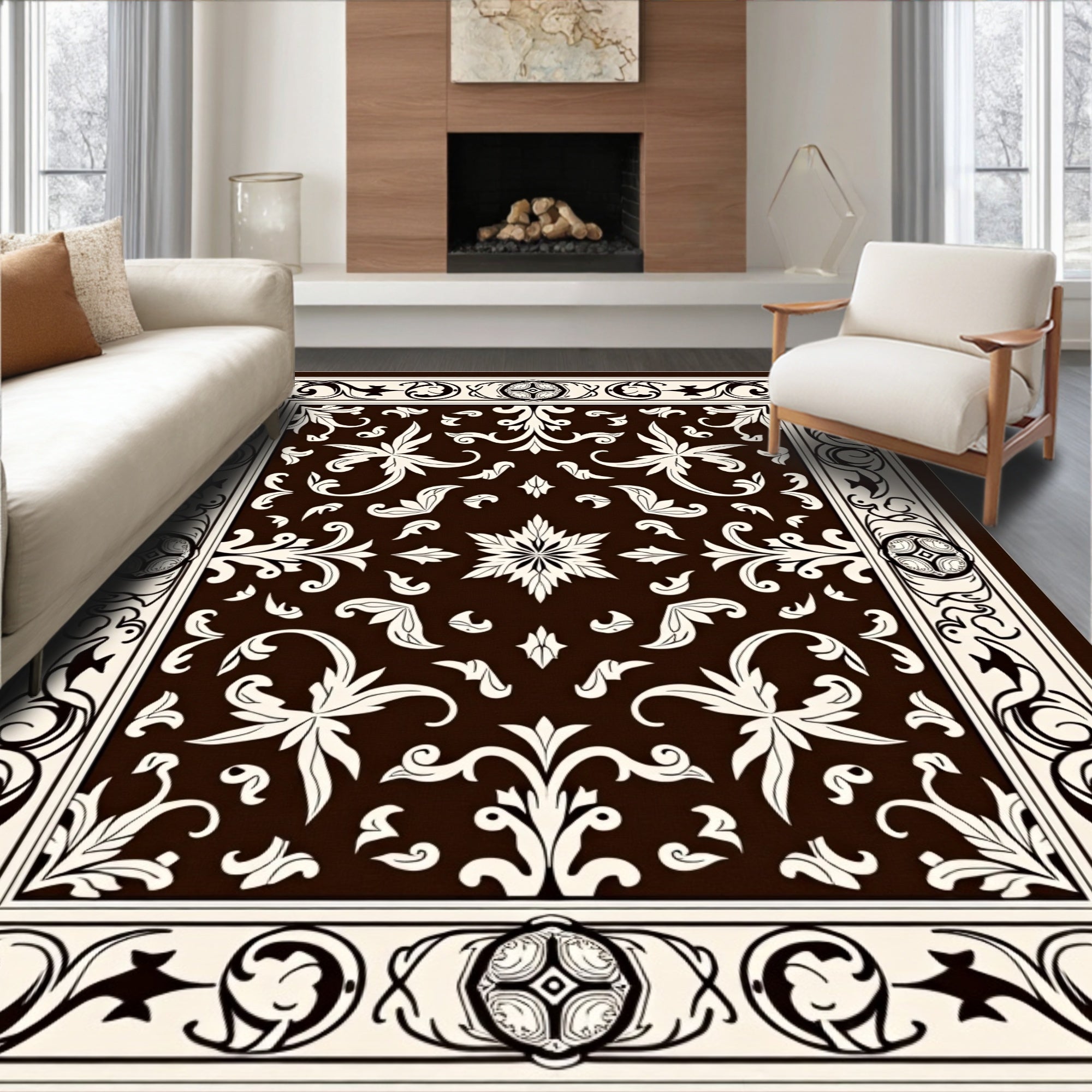 Flatwoven High Traffic Area Rug, Traditional Damask Scroll with Baroque Inspired Motifs, Non Slip, Stain Resistant, Washable Area Rugs for Living Room, Bedroom (Brown) Overview: