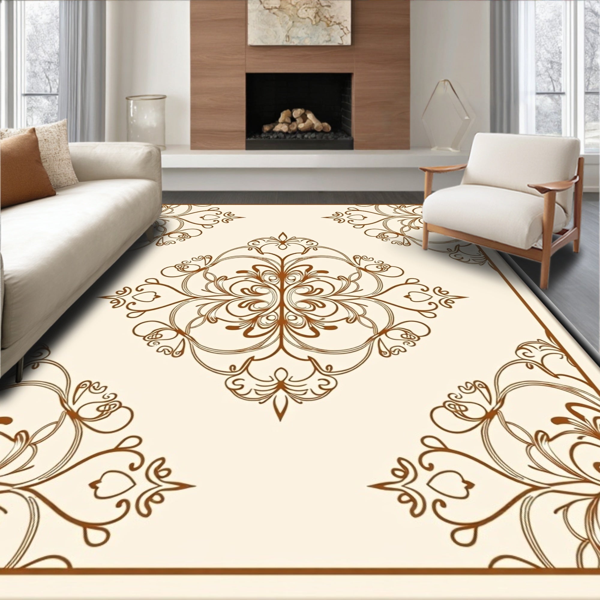 Flatwoven High Traffic Area Rug, Traditional Ornate Damask Elegant Motif, Non Slip, Stain Resistant, Washable Area Rugs for Living Room, Bedroom (Beige) Overview: