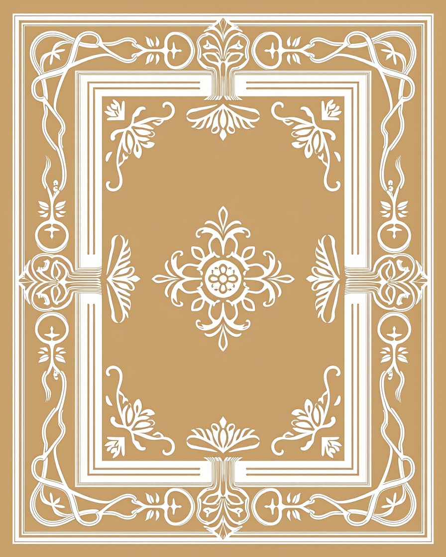 Traditional Ornate Floral Symmetrical Decorative Embellished (Beige)