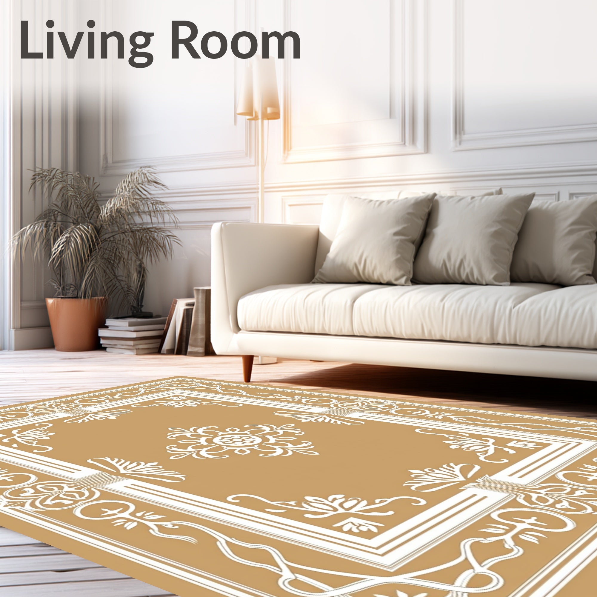 Flatwoven High Traffic Area Rug, Traditional Ornate Floral Symmetrical Decorative Embellished, Non Slip, Stain Resistant, Washable Area Rugs for Living Room, Bedroom (Beige) Overview: