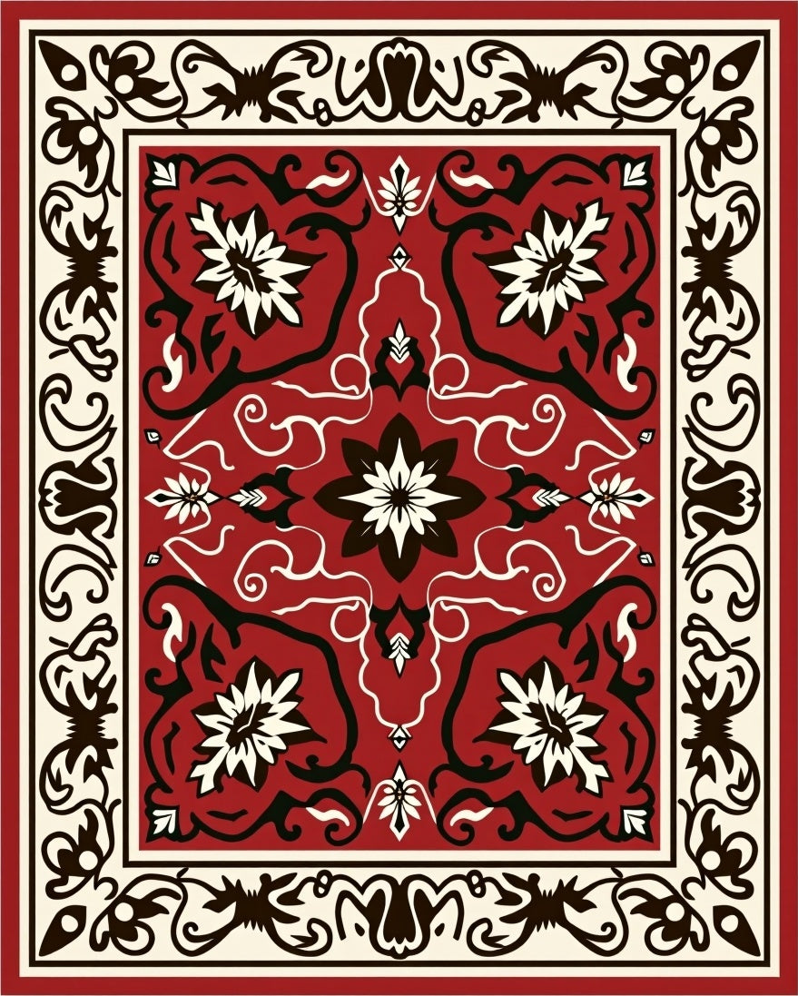 Traditional Scrollwork with Abstract Floral and Leaf (Red)