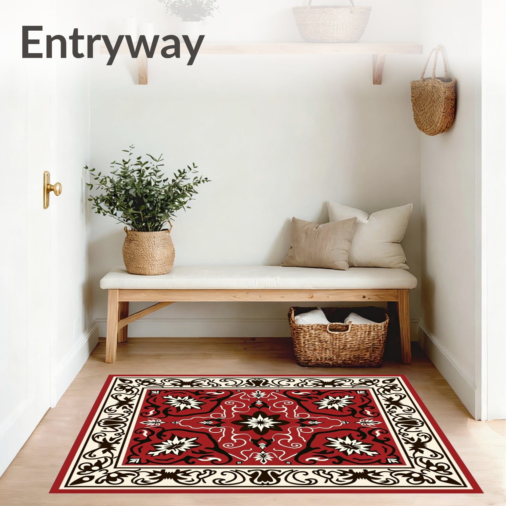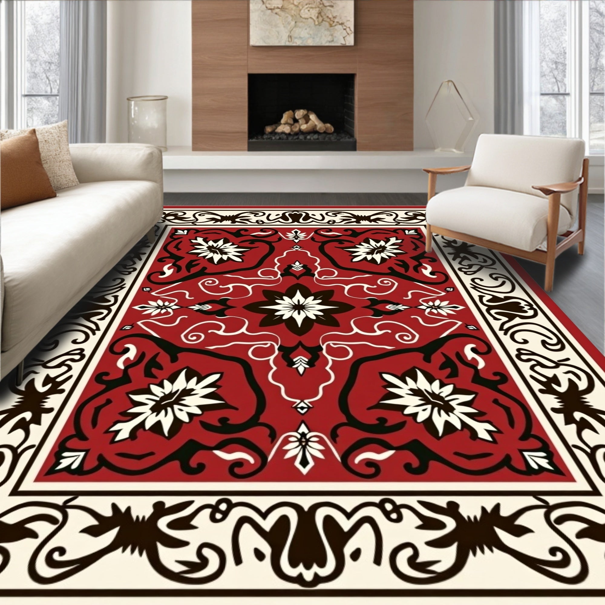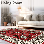 Flatwoven High Traffic Area Rug, Traditional Scrollwork with Abstract Floral and Leaf, Non Slip, Stain Resistant, Washable Area Rugs for Living Room, Bedroom (Red) Overview: