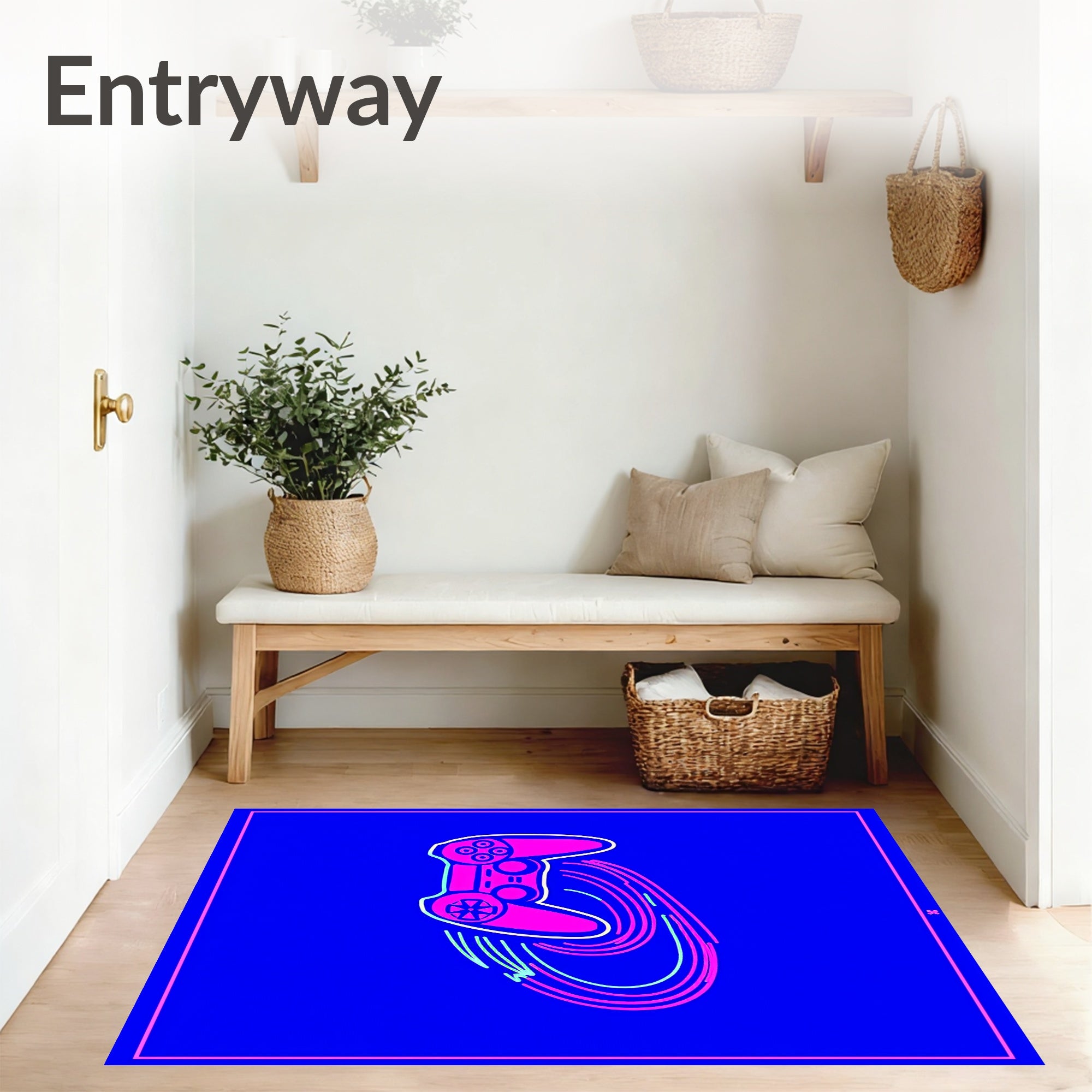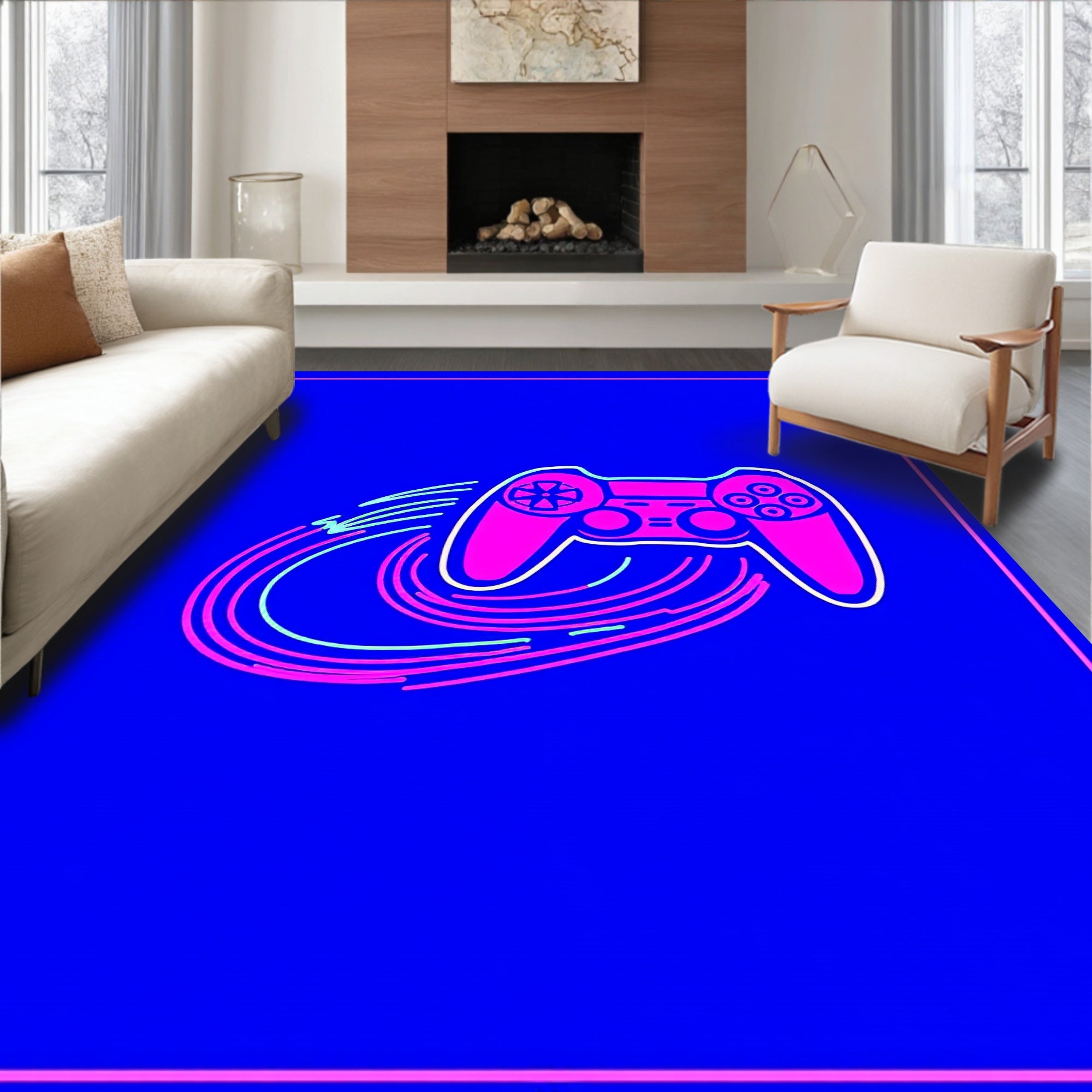 Flatwoven High Traffic Area Rug, Transparent Controller Vibrant Digital Backdrop Futuristic, Non Slip, Stain Resistant, Washable Area Rugs for Living Room, Bedroom (Pink) Overview: