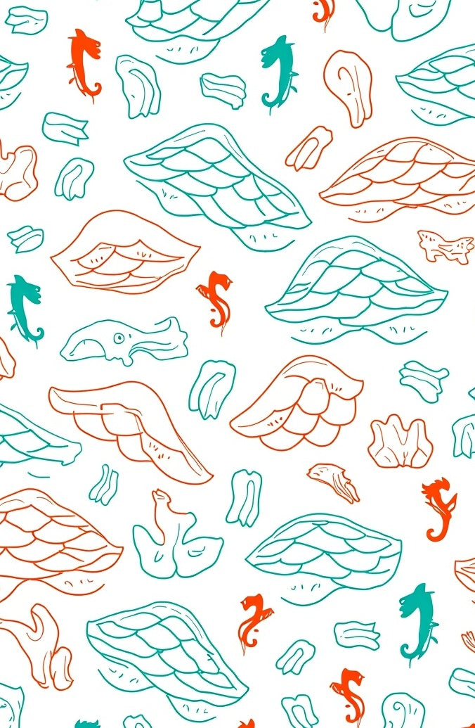 Tropical Fish Scale Waves Seahorse Underwater Motif (Red)