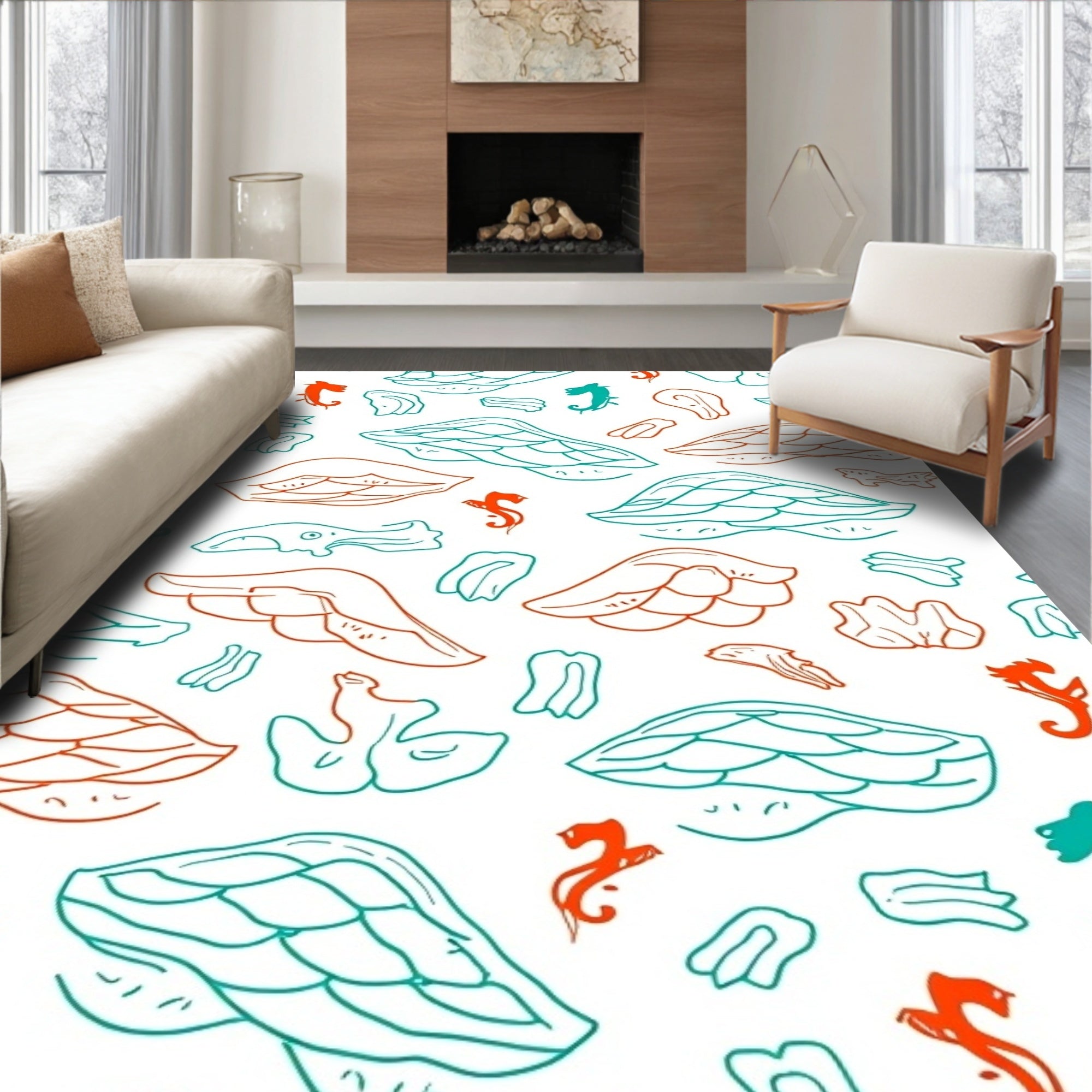 Flatwoven High Traffic Area Rug, Tropical Fish Scale Waves Seahorse Underwater Motif, Non Slip, Stain Resistant, Washable Area Rugs for Living Room, Bedroom (Red) Overview: