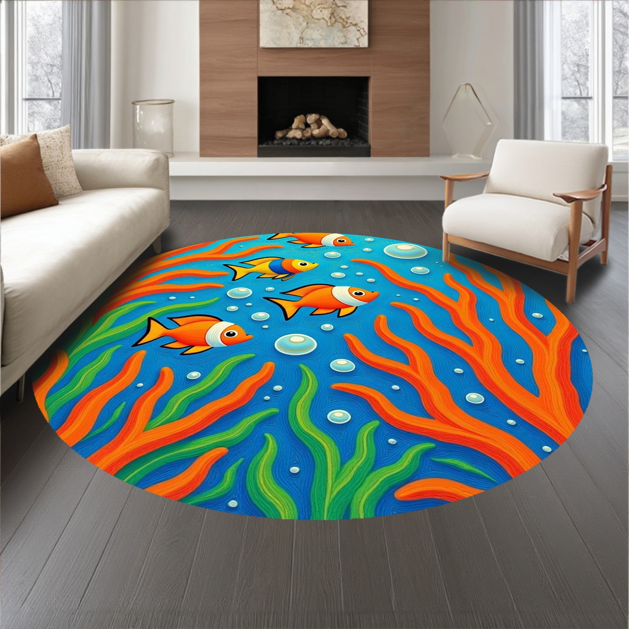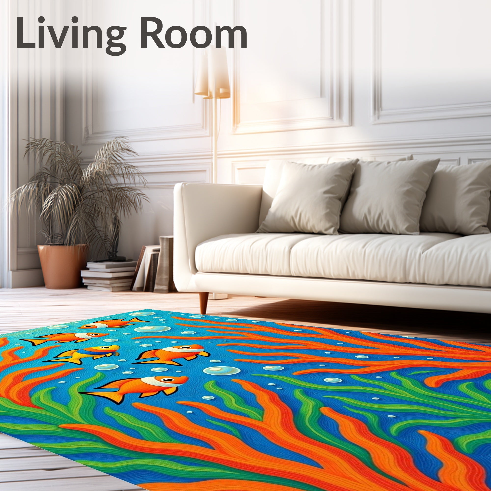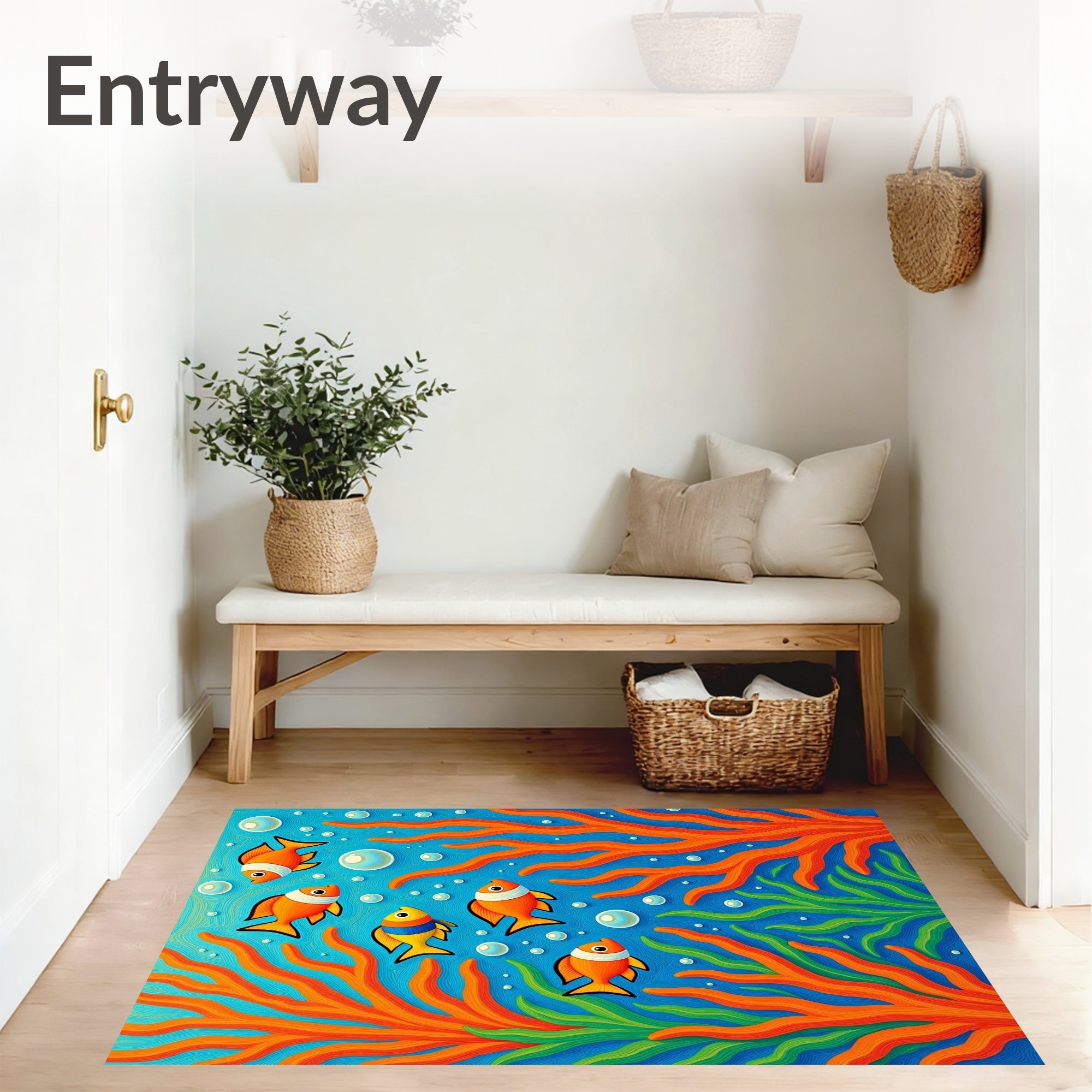 Flatwoven High Traffic Area Rug, Tropical Fish School Design Marine Entrance, Non Slip, Stain Resistant, Washable Area Rugs for Living Room, Bedroom (Blue) Overview: