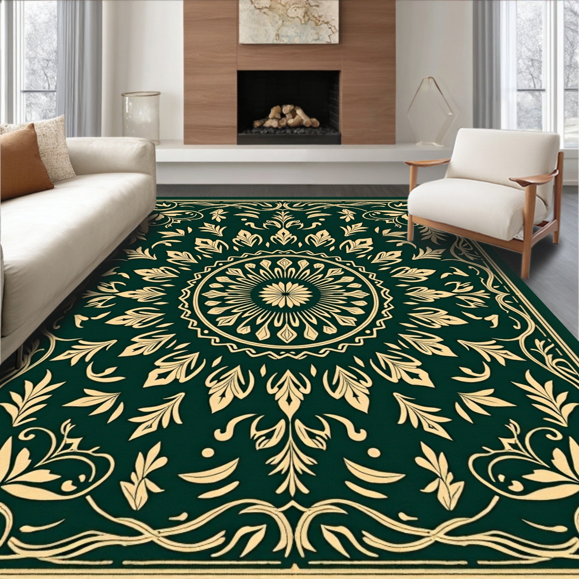 Flatwoven High Traffic Area Rug, Verdant Meadow Botanical Medallion, Non Slip, Stain Resistant, Washable Area Rugs for Living Room, Bedroom (Green) Overview: