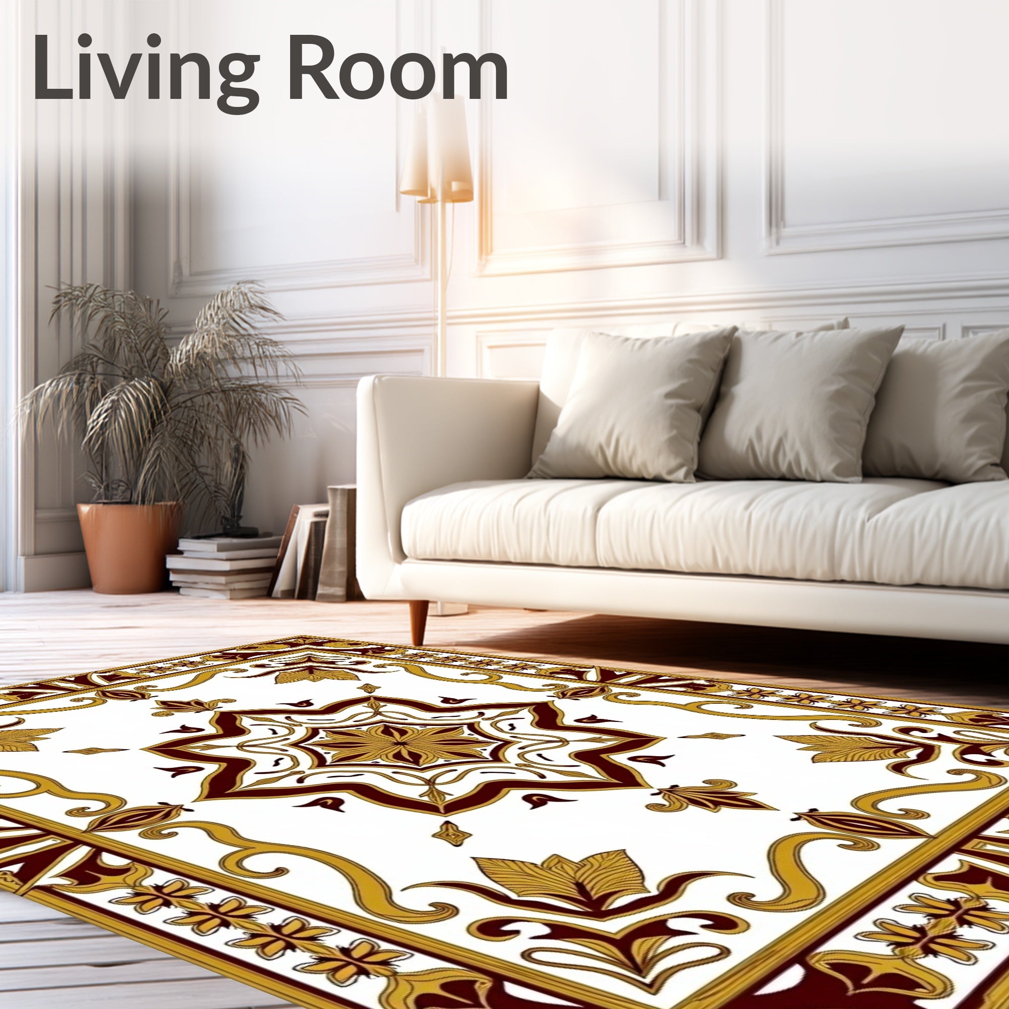 Flatwoven High Traffic Area Rug, Vibrant Burst with Ornate Floral Motifs, Non Slip, Stain Resistant, Washable Area Rugs for Living Room, Bedroom (White) Overview: