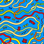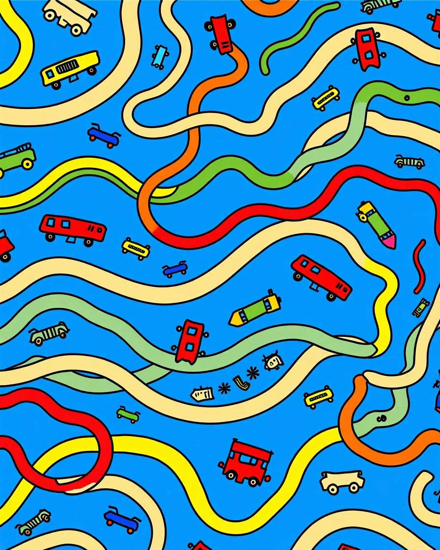 Vibrant Roadway Adventure With Playful Vehicle Icons (Blue)