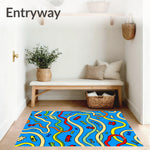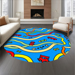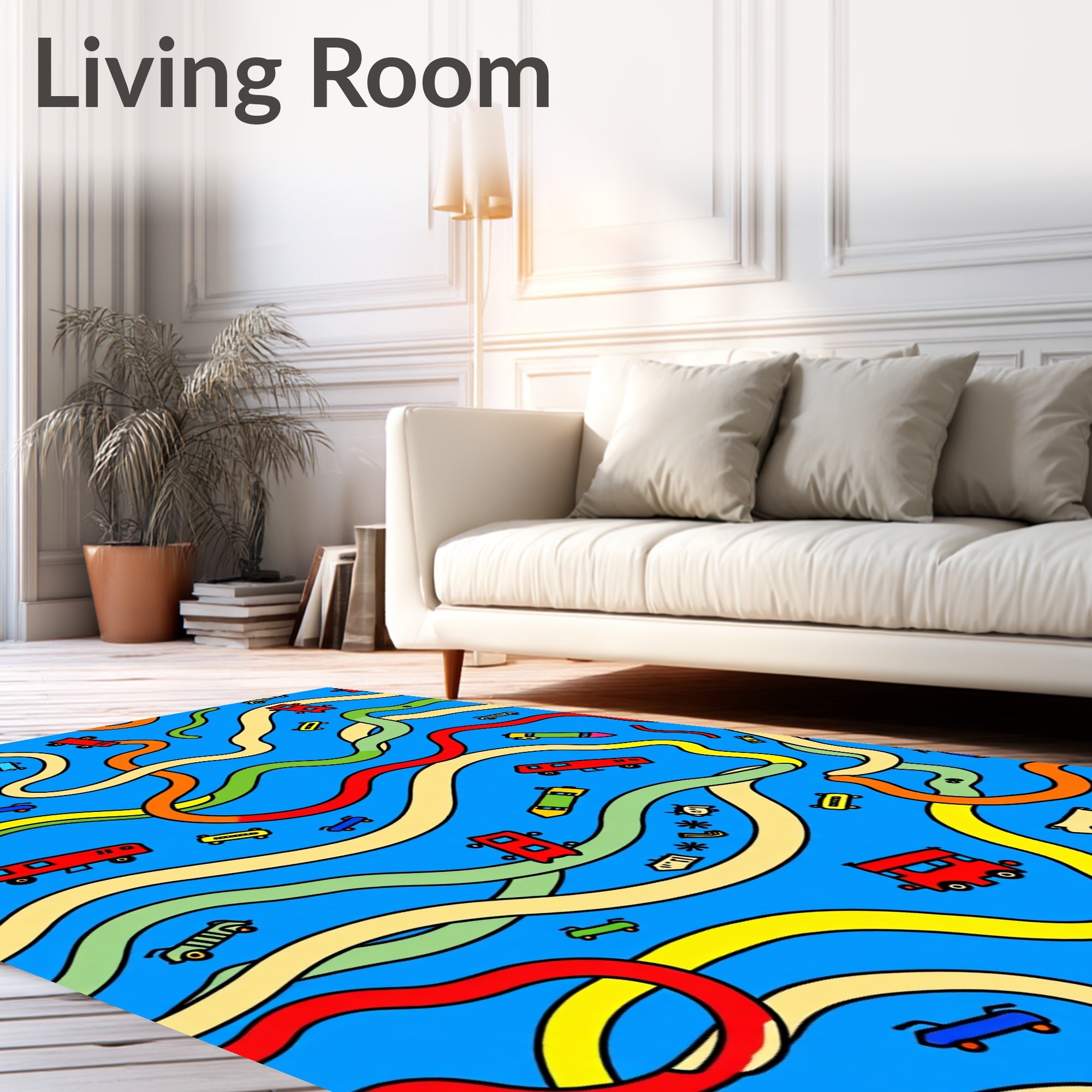 Flatwoven High Traffic Area Rug, Vibrant Roadway Adventure With Playful Vehicle Icons, Non Slip, Stain Resistant, Washable Area Rugs for Living Room, Bedroom (Blue) Overview: