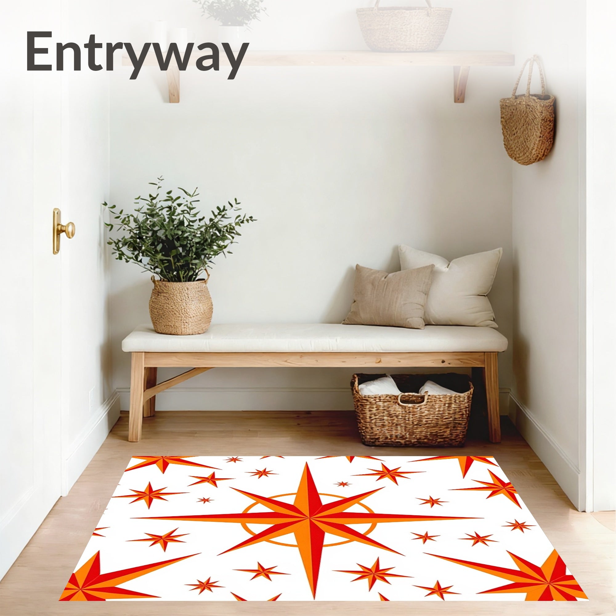 Flatwoven High Traffic Area Rug, Vintage Compass Rose with Nautical Design, Non Slip, Stain Resistant, Washable Area Rugs for Living Room, Bedroom (Red) Overview: