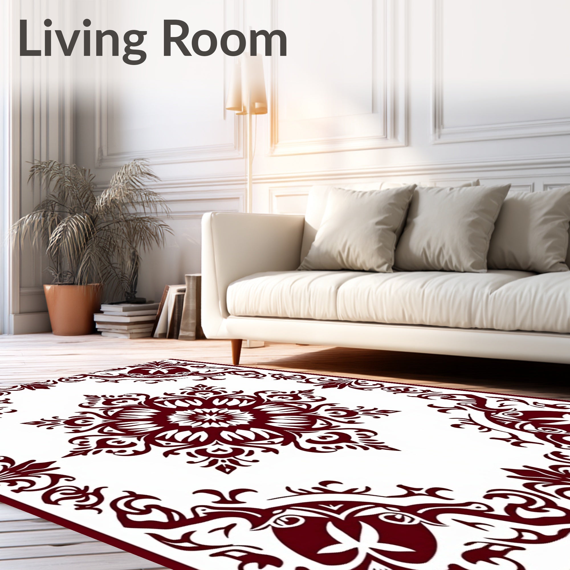 Flatwoven High Traffic Area Rug, Vintage Damask Heritage, Non Slip, Stain Resistant, Washable Area Rugs for Living Room, Bedroom (Red) Overview: