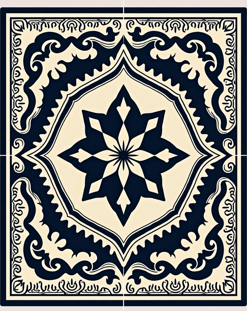 Vintage Distressed Medallion Interlocking Boho Faded Heritage (Black)