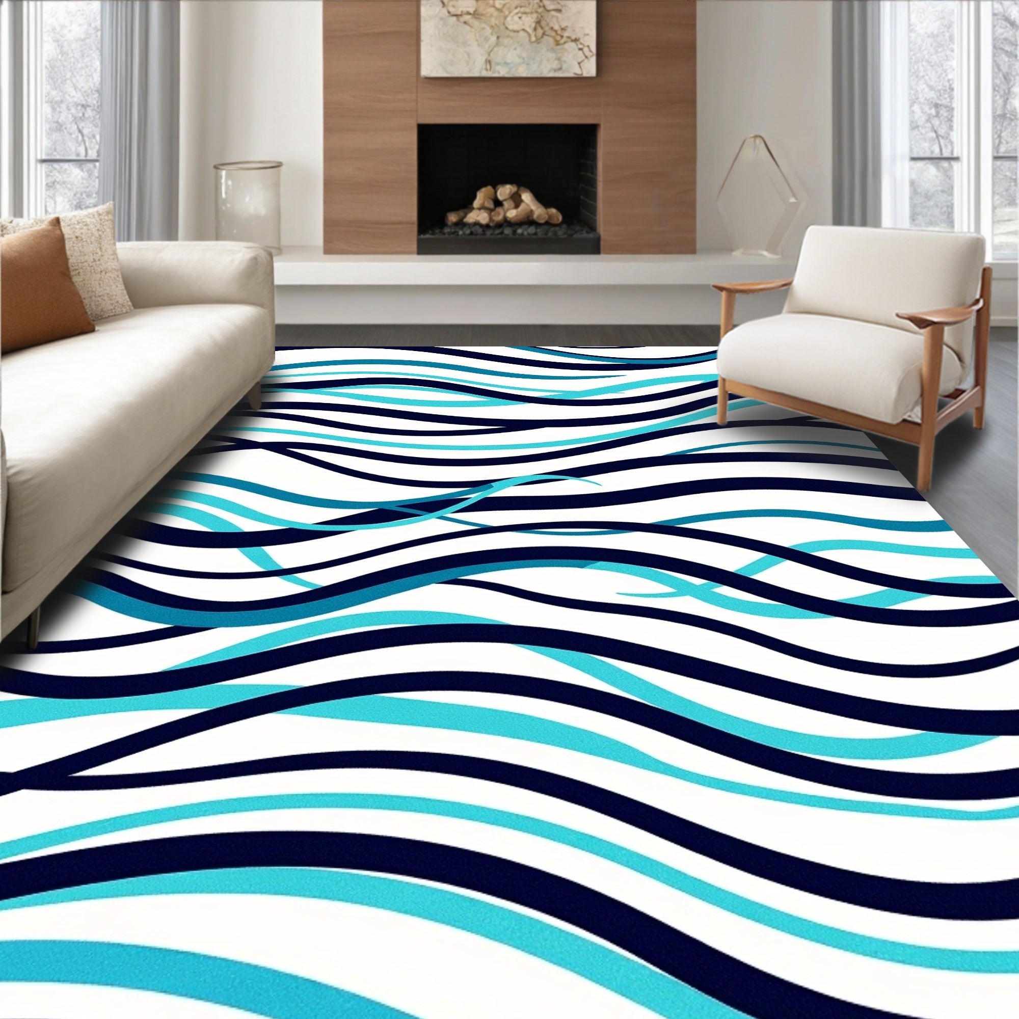 Flatwoven High Traffic Area Rug, Wave Ripple Shag Decorative Flooring Accent, Non Slip, Stain Resistant, Washable Area Rugs for Living Room, Bedroom (White) Overview: