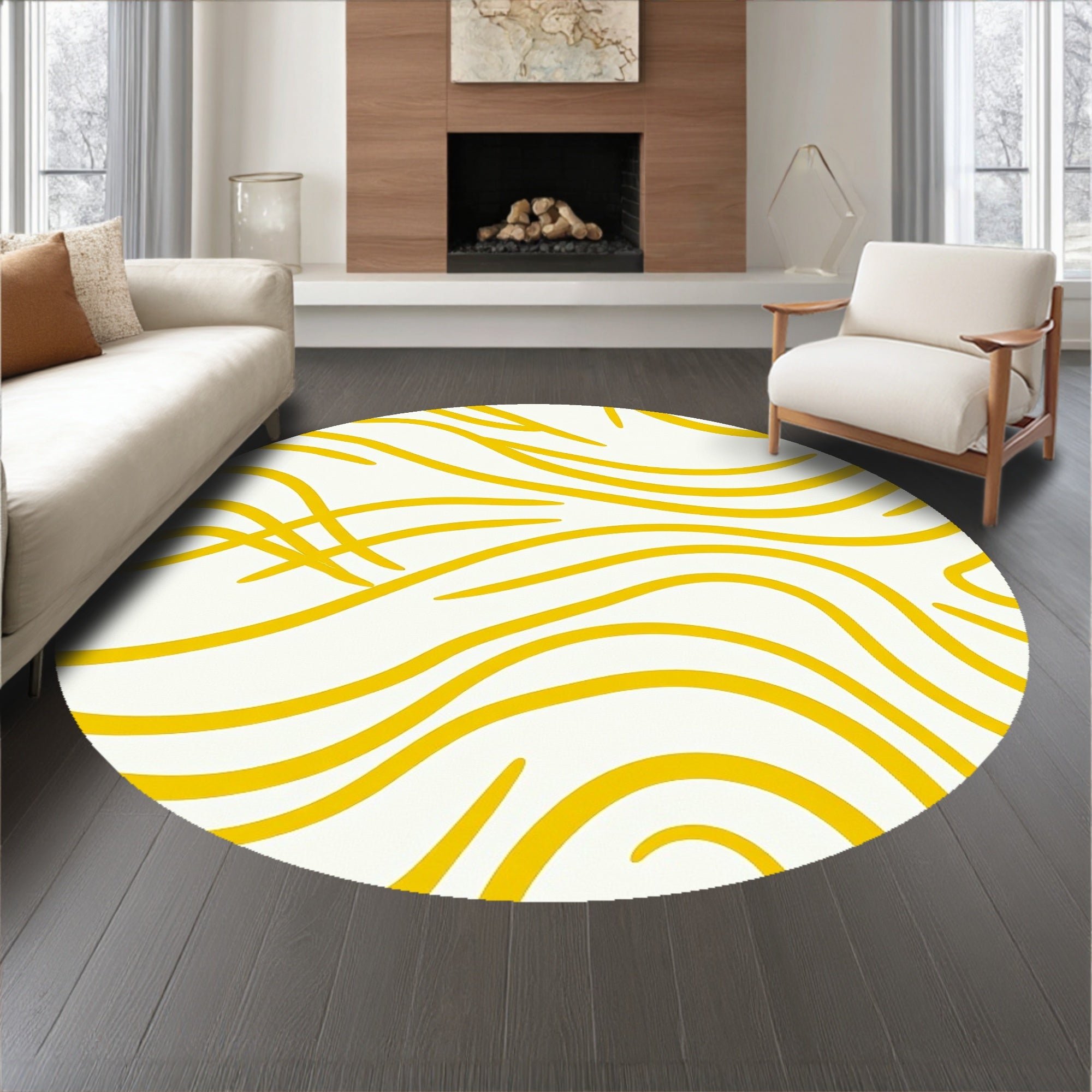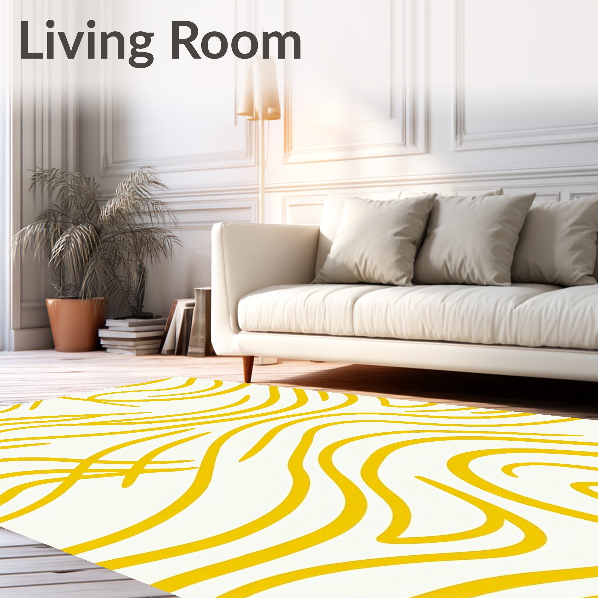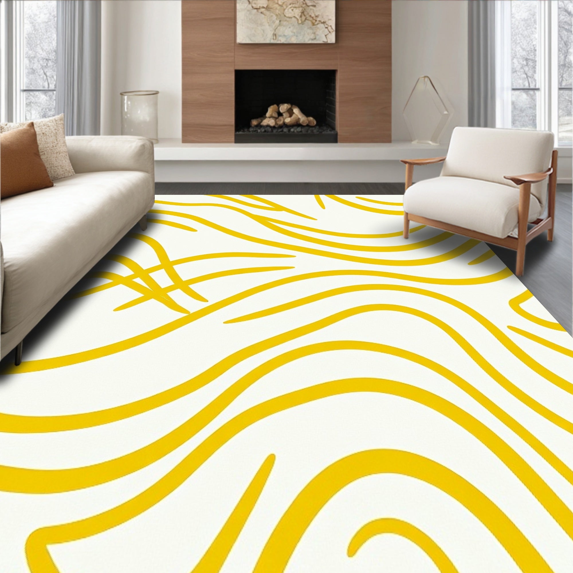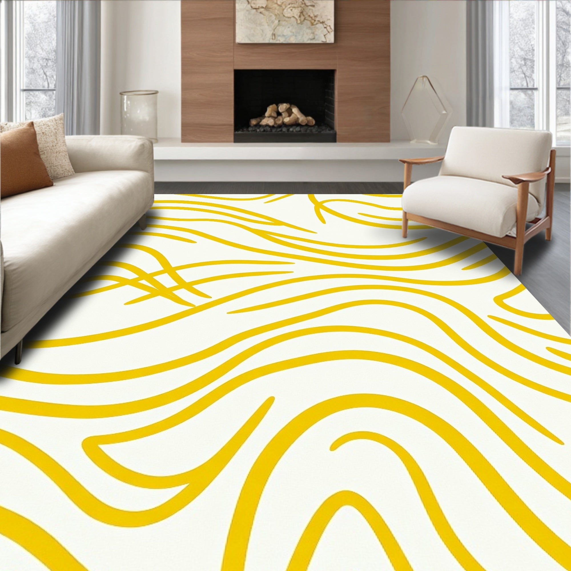 Flatwoven High Traffic Area Rug, Waves Abstract Swirl Modern Minimalist Brushstroke, Non Slip, Stain Resistant, Washable Area Rugs for Living Room, Bedroom (Yellow) Overview: