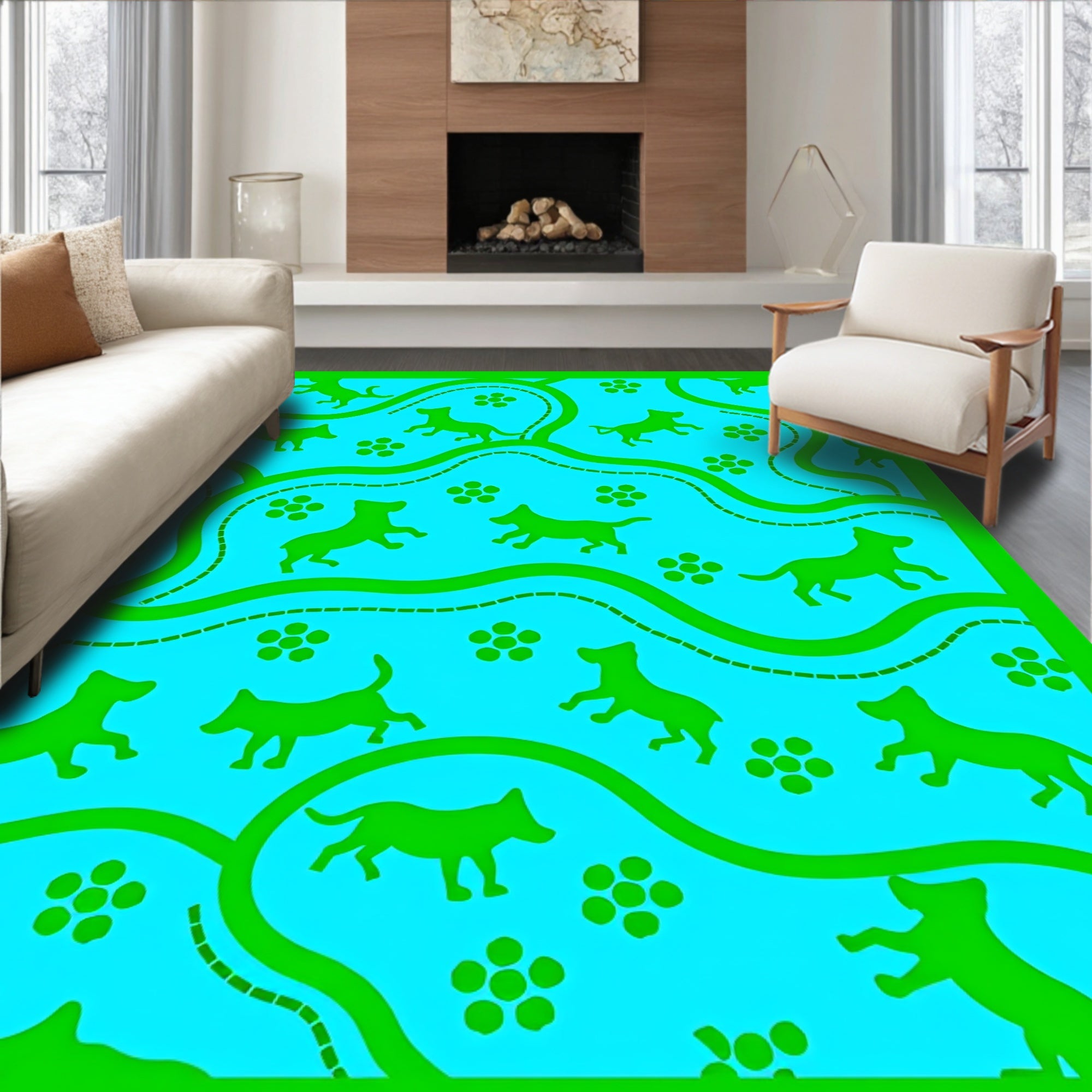 Flatwoven High Traffic Area Rug, Whimsical Canine Patrol Trail with Dynamic Roadway and Character, Non Slip, Stain Resistant, Washable Area Rugs for Living Room, Bedroom (Blue) Overview: