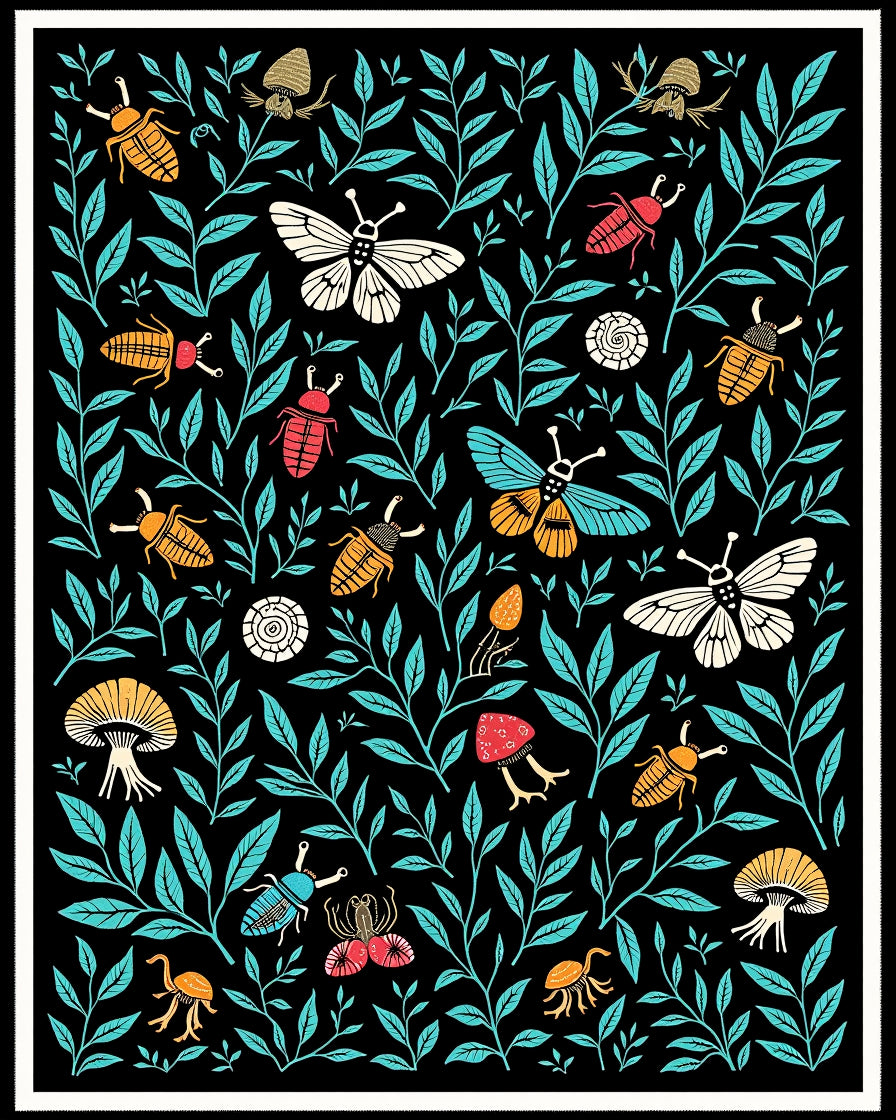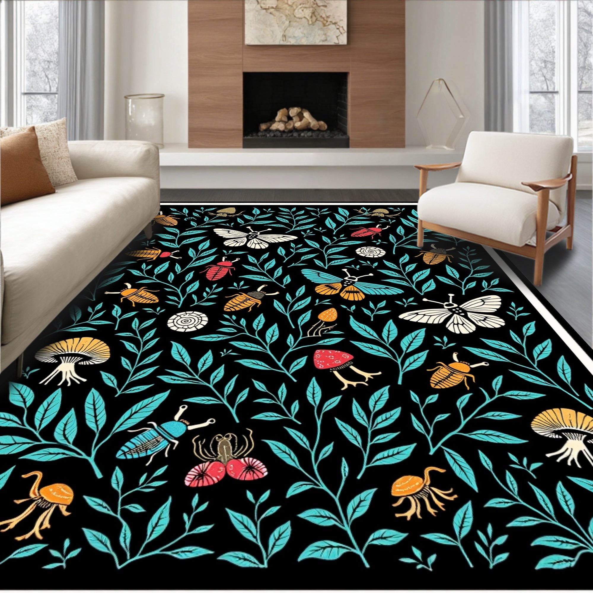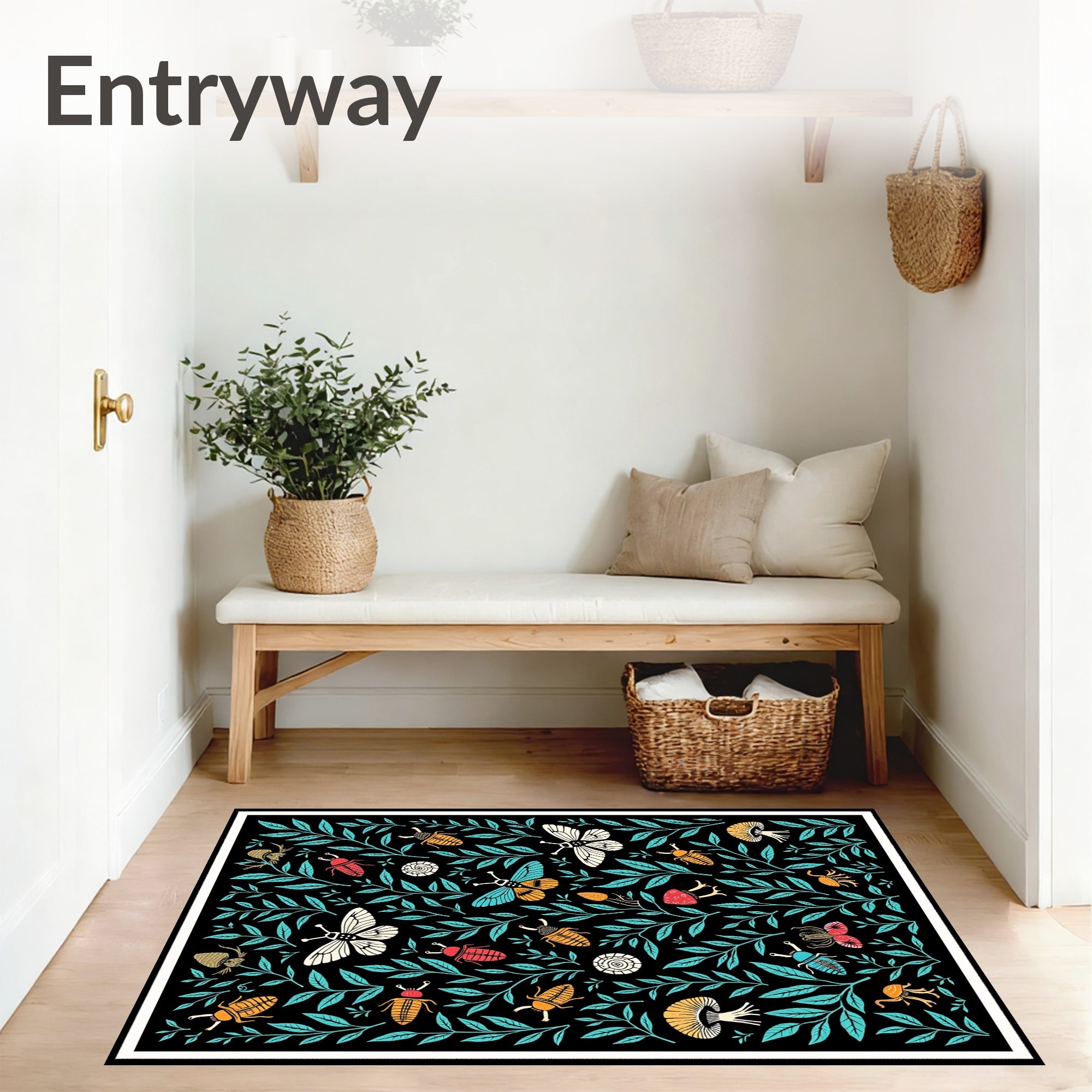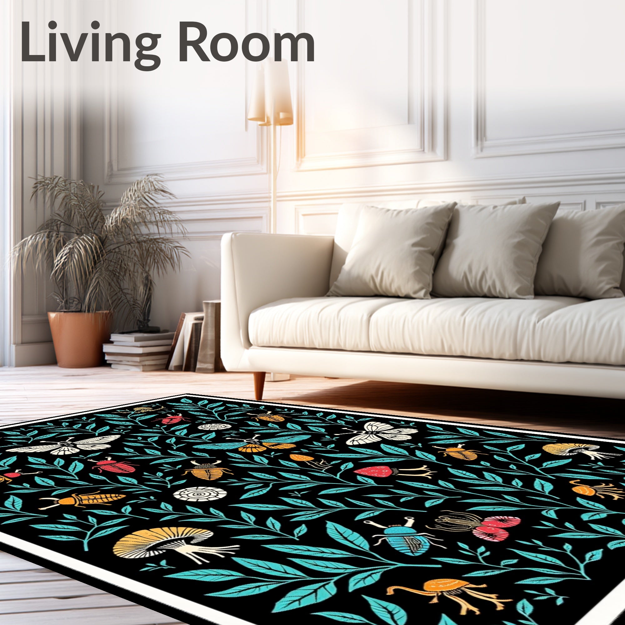 Flatwoven High Traffic Area Rug, Whimsical Woodland Creature Natural History, Non Slip, Stain Resistant, Washable Area Rugs for Living Room, Bedroom (Black) Overview: