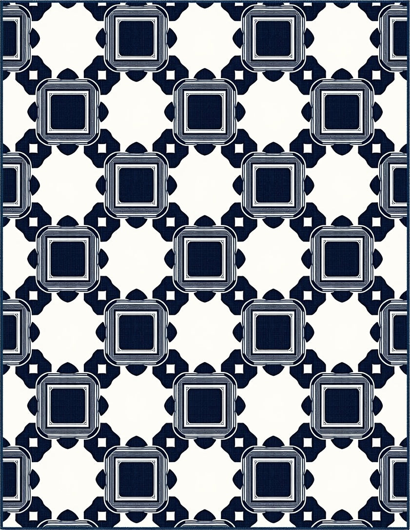 Windowpane Trellis Artisan Handwoven Bistro Café Inspired Checks (Navy)