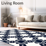 Flatwoven High Traffic Area Rug, Windowpane Trellis Artisan Handwoven Bistro Café Inspired Checks, Non Slip, Stain Resistant, Washable Area Rugs for Living Room, Bedroom (Navy) Overview: