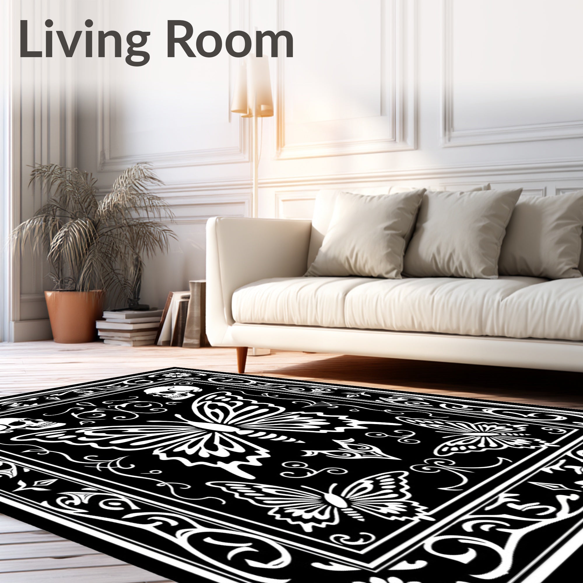 Flatwoven High Traffic Area Rug, Witchy Skull Statement Floor Covering, Non Slip, Stain Resistant, Washable Area Rugs for Living Room, Bedroom (Black) Overview: