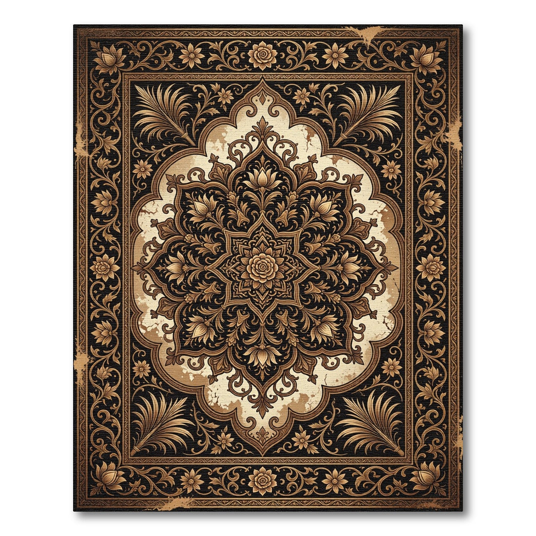 Golden Floral Medallion Black Ivory Rug