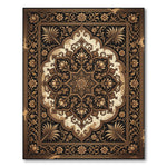 This rug is a visual ode to the rich tapestry of Persian artistry, drawing inspiration from the intricate floral motifs and symmetrical perfection found in ancient carpet weaving traditions. Imagine the hushed ambiance of a caravanserai, where stories and silks were exchanged under the glow of lantern light. The central medallion, like a blossoming lotus or a sunburst, radiates outward, its golden petals unfurling against a void-black expanse reminiscent of a moonless desert night. The scrolling acanthus leaves and delicate blossoms that frame it speak of a reverence for nature and a love for ornamental detail, echoing the opulence of Safavid-era palaces. When you bring this rug into your home, it transforms the ordinary into the extraordinary. Walls seem to recede, and the floor becomes a canvas of ancient splendor, inviting contemplation and conversation. This is for the soul that appreciates history etched in design, the seeker of sanctuary who believes that true beauty lies in meticulously crafted legacies. Don't just furnish your space—furnish it with soul. This rug is an heirloom waiting to be discovered, a daily invitation to walk upon beauty.