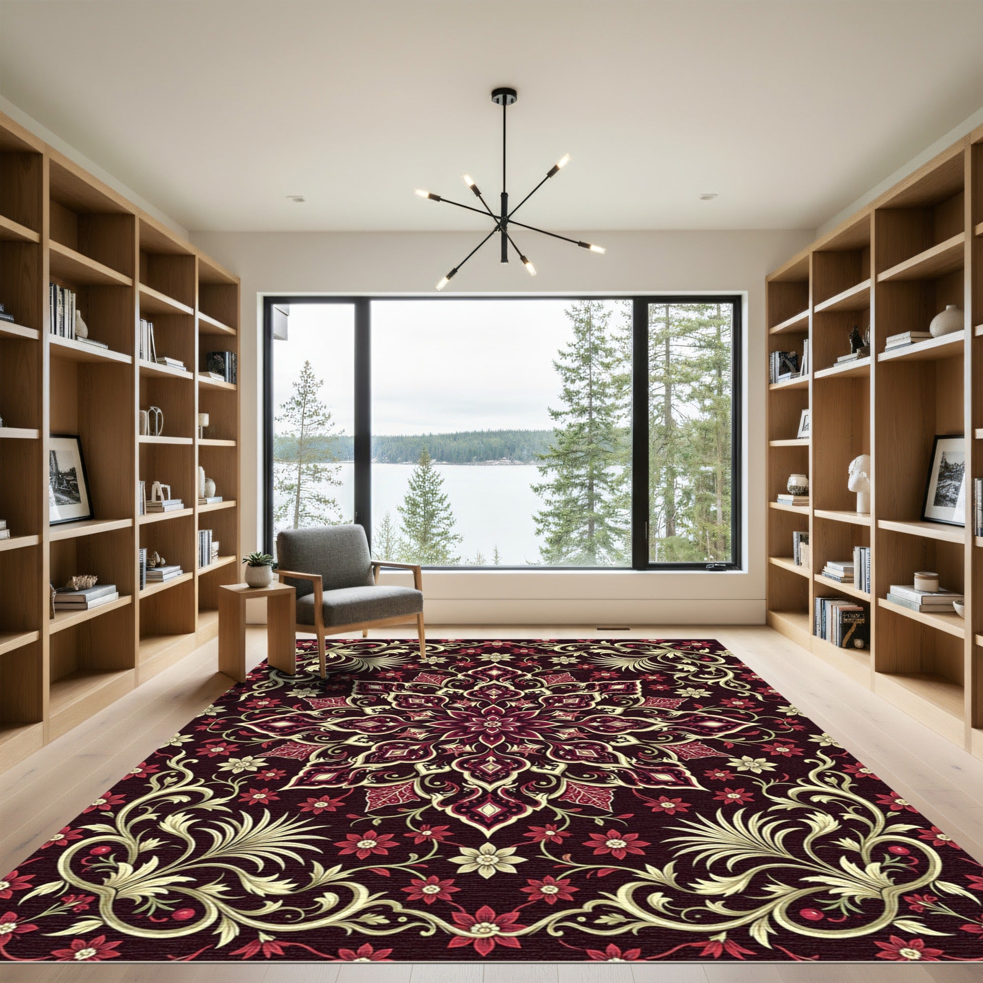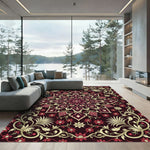 Rich Crimson Floral Scrolling Mandala Rug