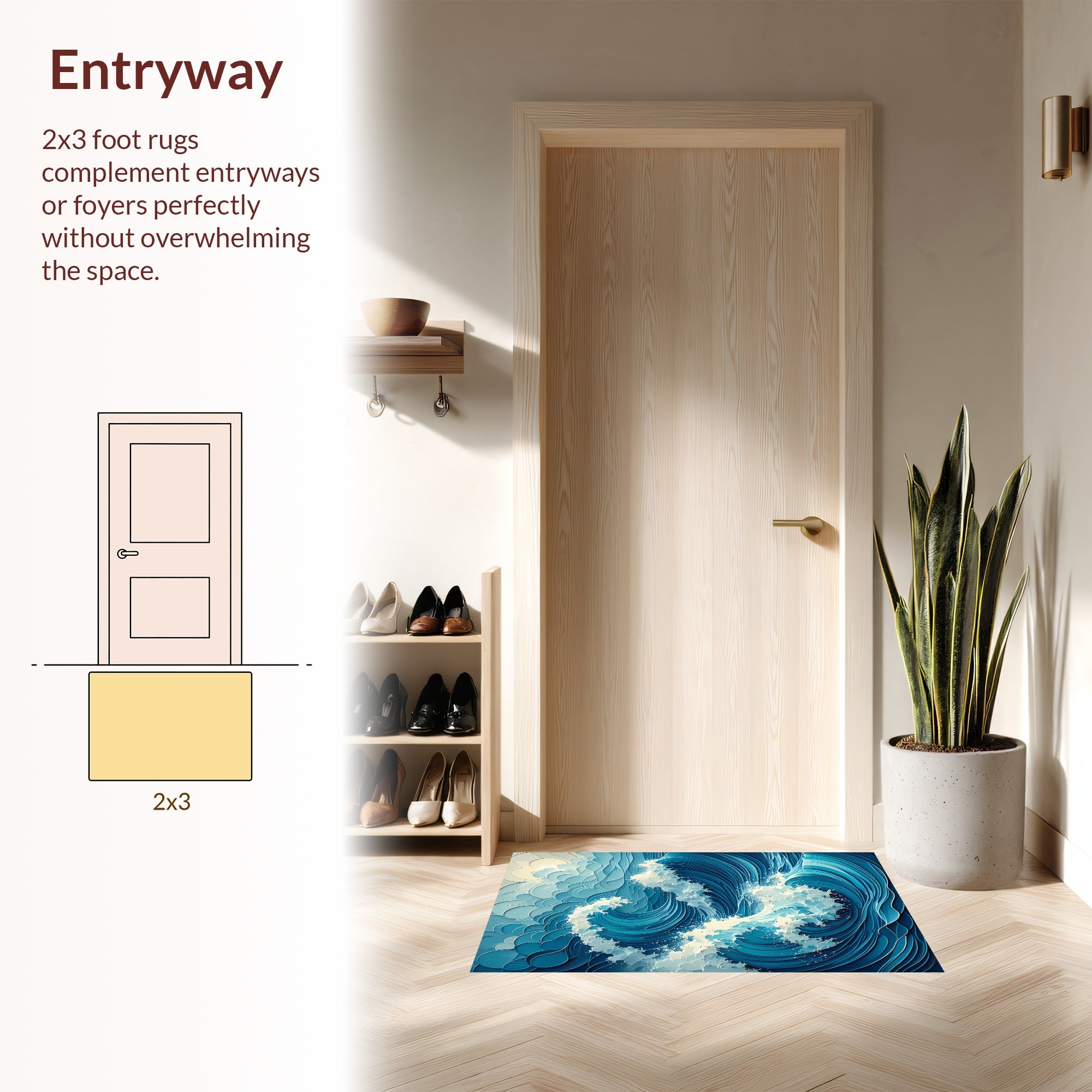 Flatwoven High Traffic Area Rug, Beach Wave, Non Slip, Stain Resistant, Washable Area Rugs for Living Room, Bedroom (Blue) Overview: