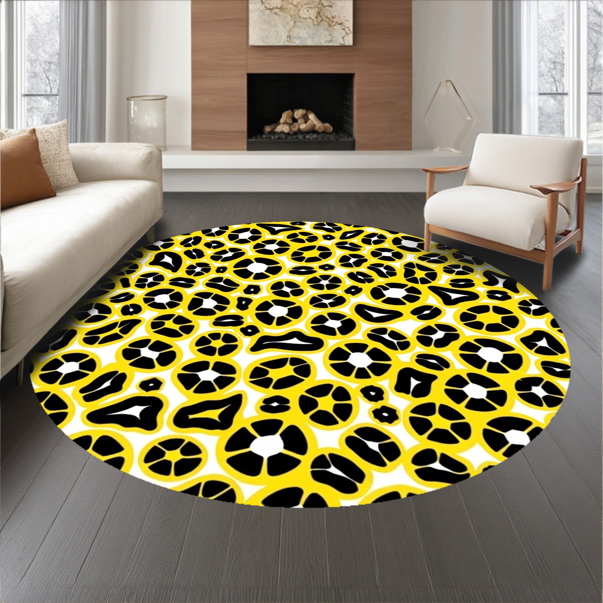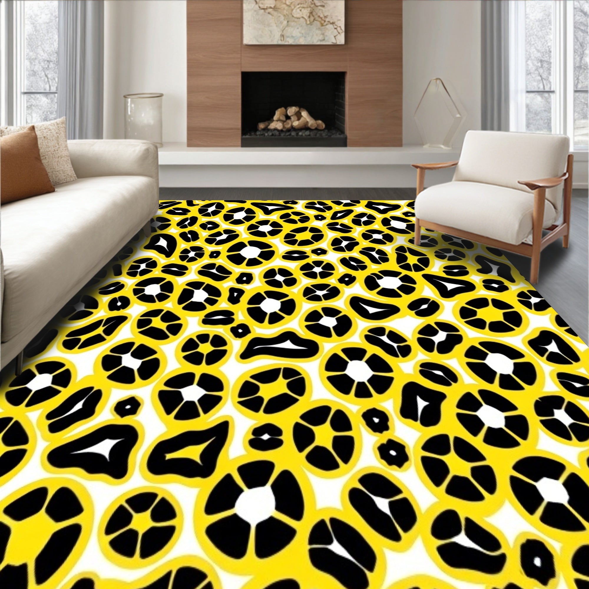 Ultra Soft Area Rug, Non Slip, Stain Resistant, Washable Area Rugs for Living Room, Bedroom, Abstract Animal Inspired Design Featuring Monochrome Spotted Motifs(Yellow) Overview: