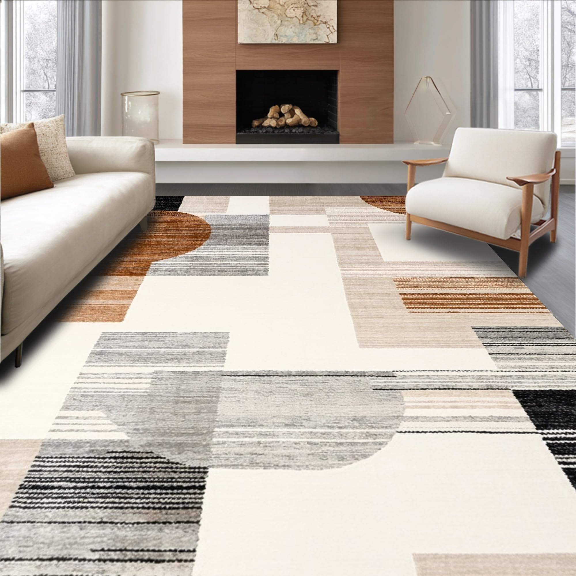 Ultra Soft Area Rug, Non Slip, Stain Resistant, Washable Area Rugs for Living Room, Bedroom, Abstract Animal Inspired Design with Brown and Silver(Beige) Overview: