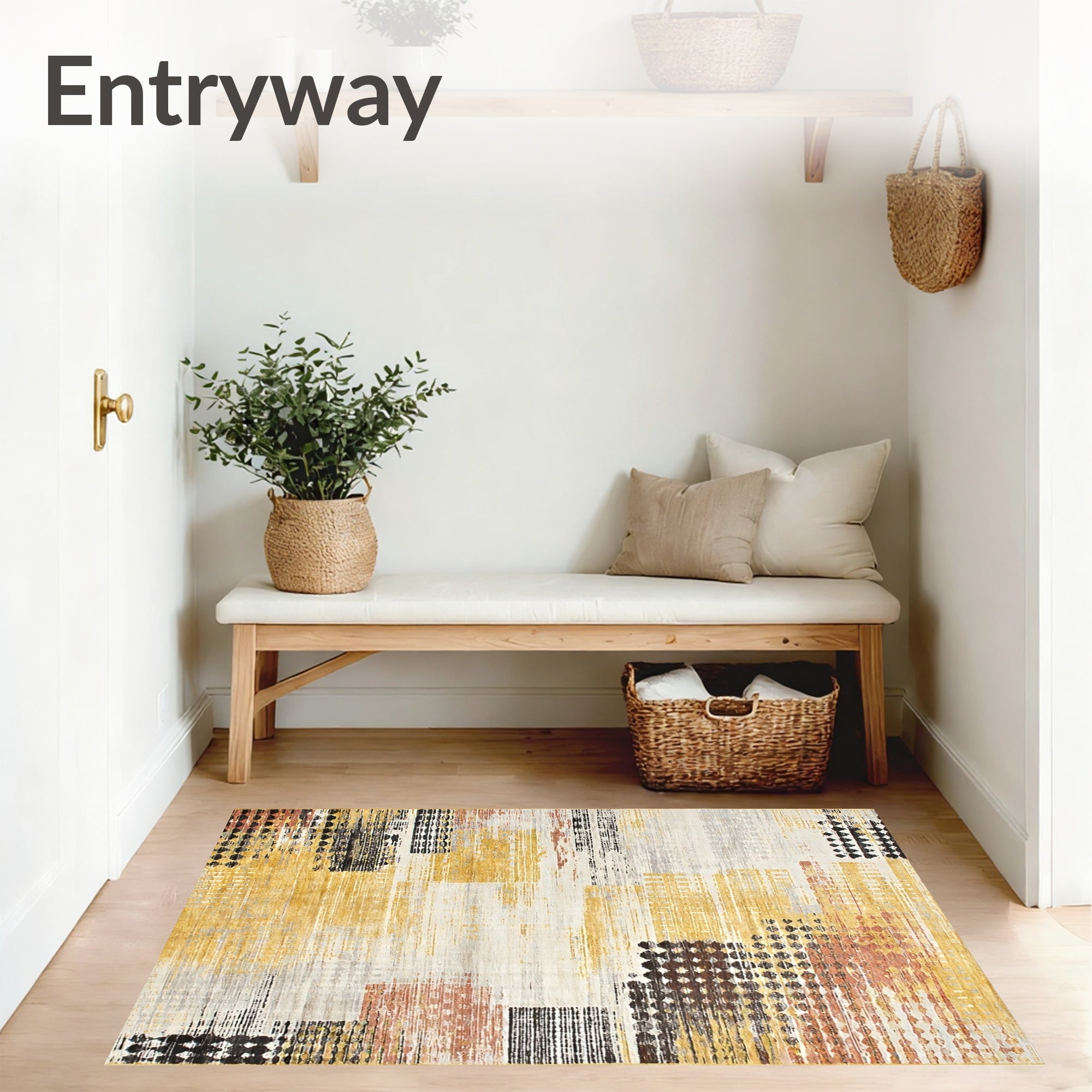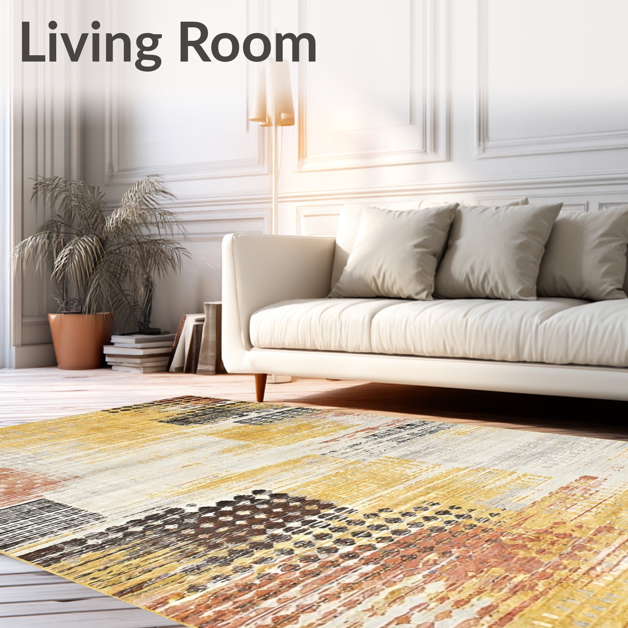 Ultra Soft Area Rug, Non Slip, Stain Resistant, Washable Area Rugs for Living Room, Bedroom, Abstract Animal Inspired for Girl Room(Gold) Overview: