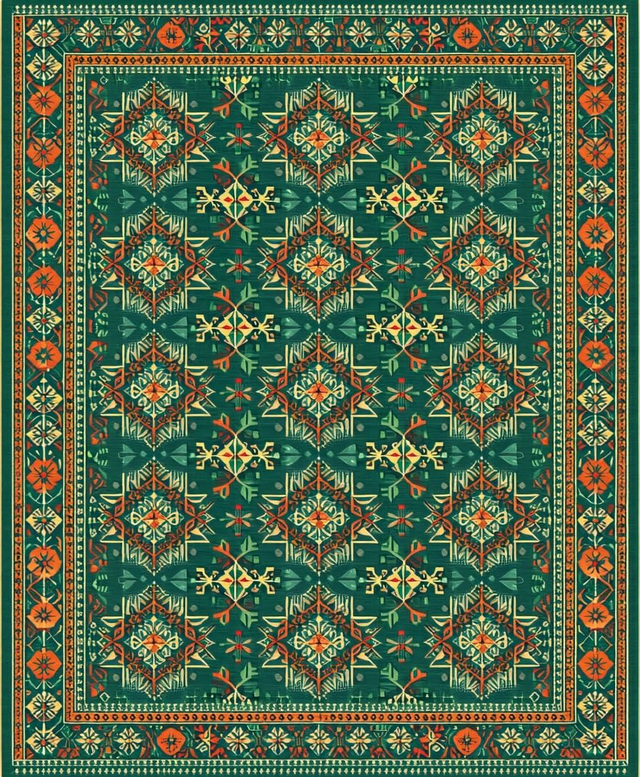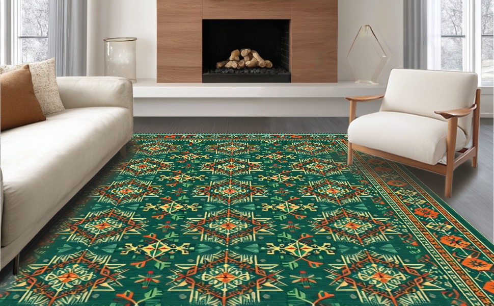 Ultra Soft Area Rug, Non Slip, Stain Resistant, Washable Area Rugs for Living Room, Bedroom, Abstract Armenian Motif Aesthetic(Green) Overview: