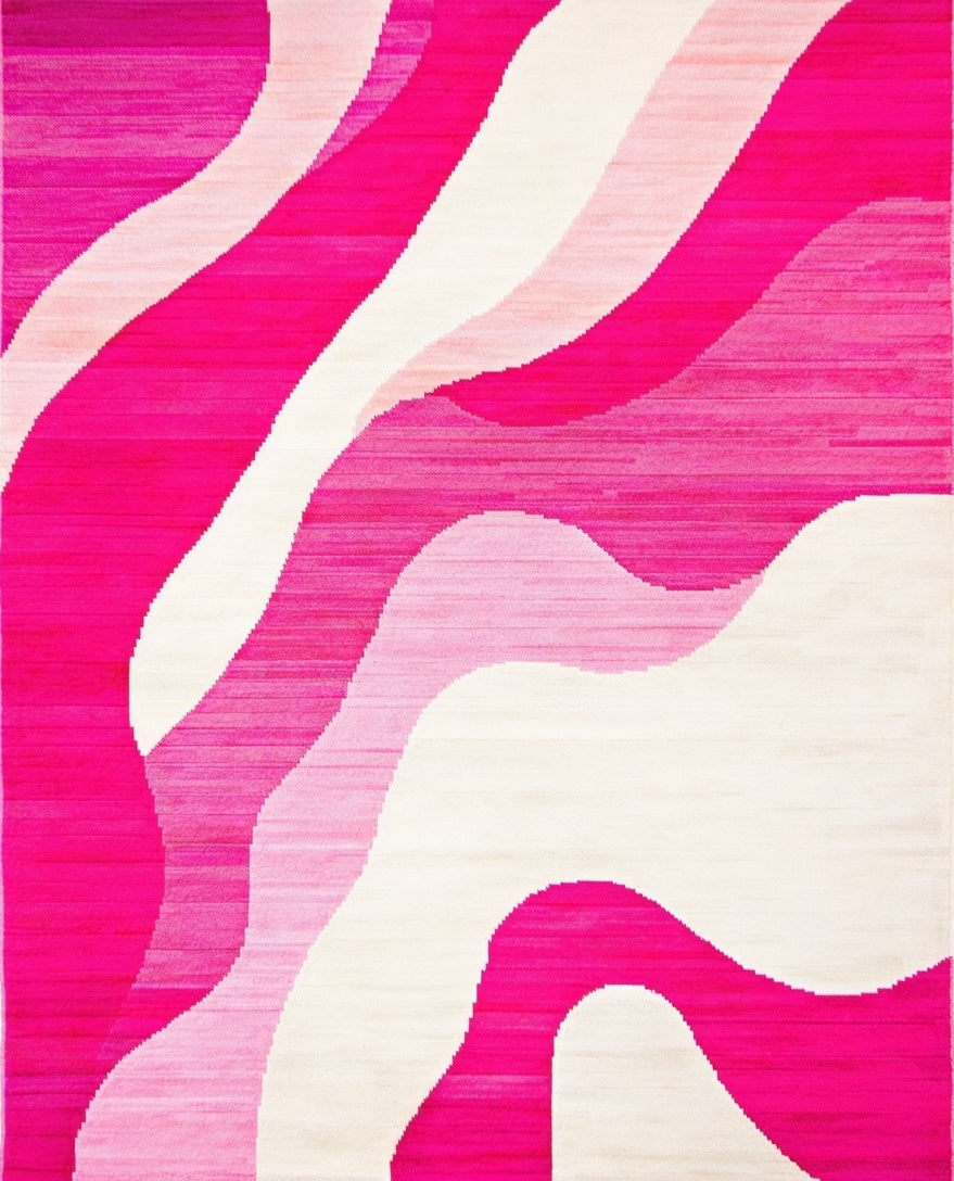 Flatwoven High Traffic Area Rug, Abstract Artistry for Modern, Non Slip, Stain Resistant, Washable Area Rugs for Living Room, Bedroom (Pink) Overview: