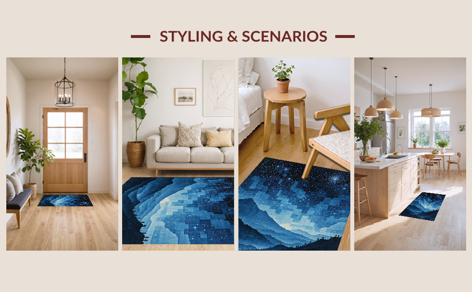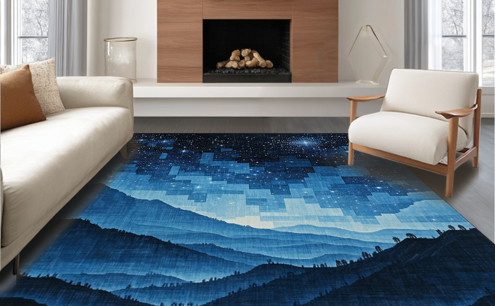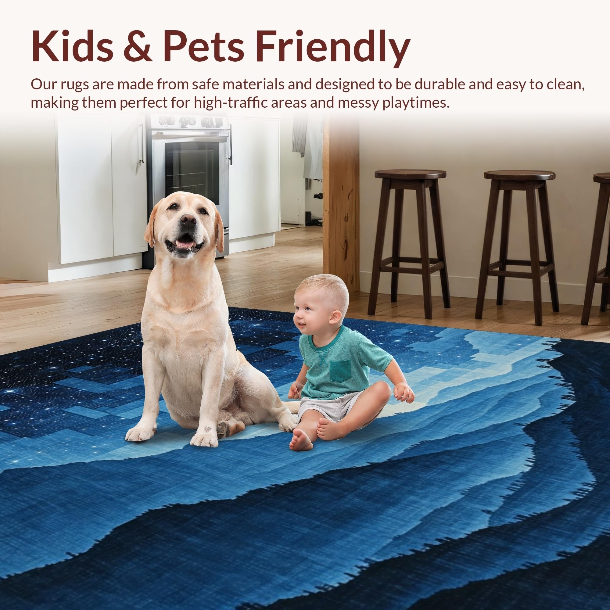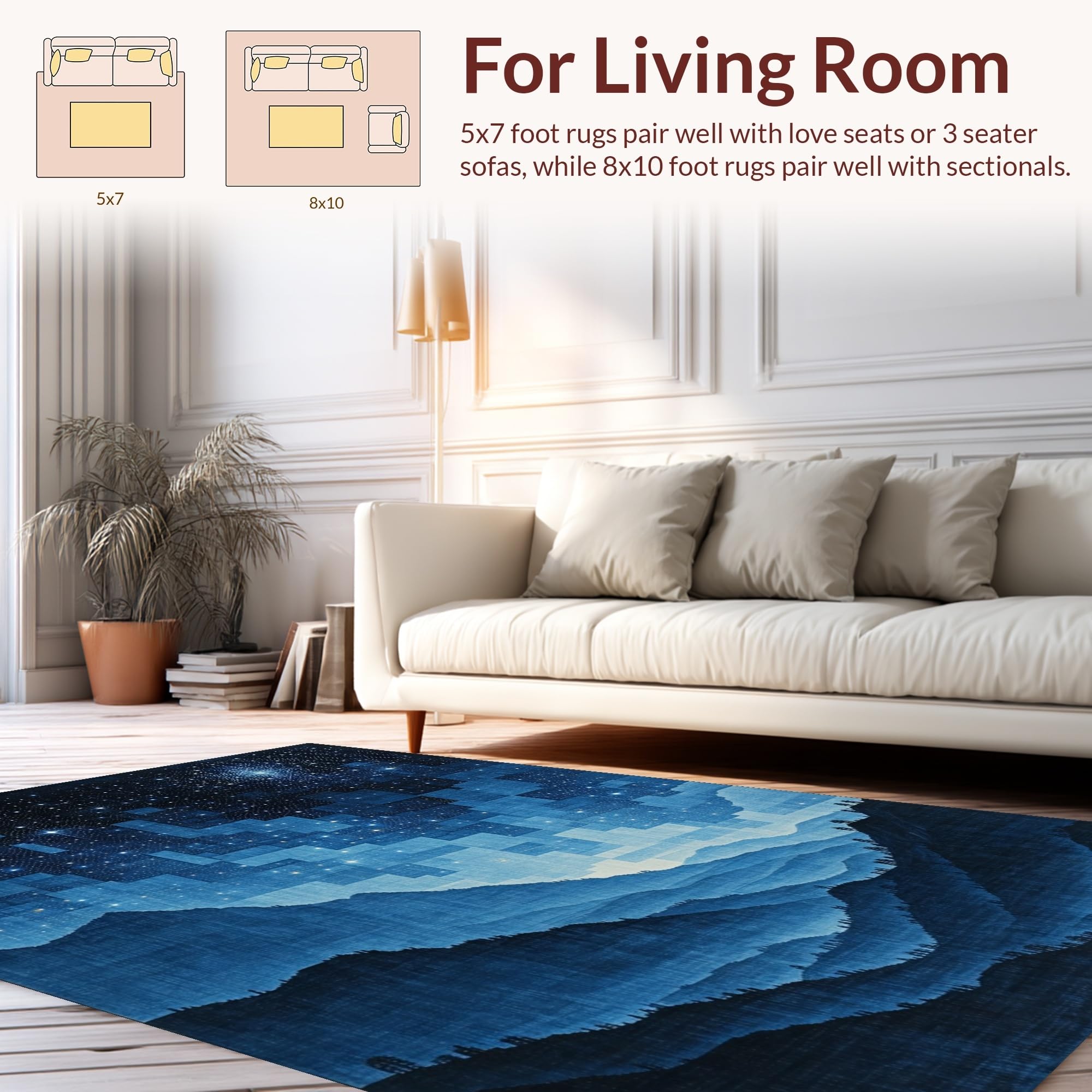 Ultra Soft Area Rug, Non Slip, Stain Resistant, Washable Area Rugs for Living Room, Bedroom, Abstract Blue Toned Elegance(Blue) Overview: