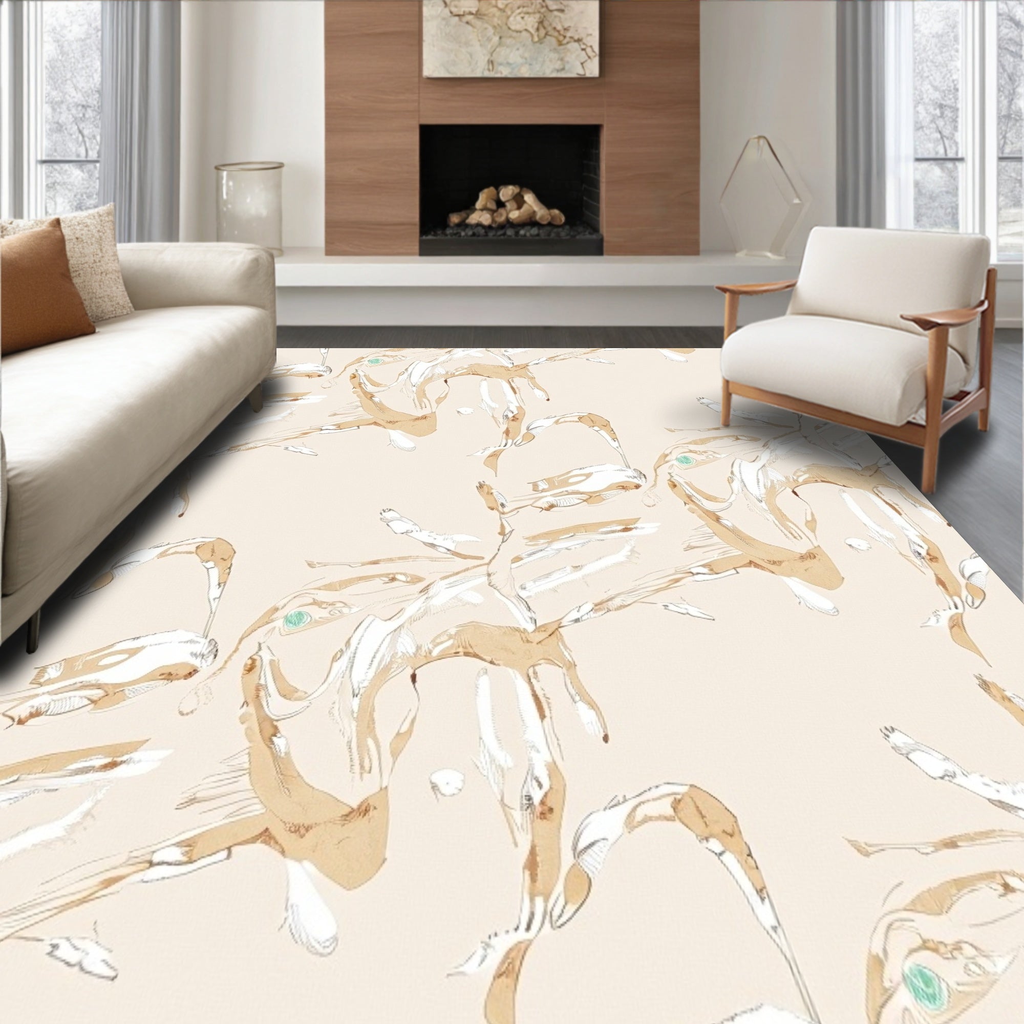Ultra Soft Area Rug, Non Slip, Stain Resistant, Washable Area Rugs for Living Room, Bedroom, Abstract Brushstroke Art Minimalist Modern Contemporary Aesthetic(Beige) Overview: