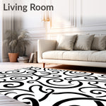 Ultra Soft Area Rug, Non Slip, Stain Resistant, Washable Area Rugs for Living Room, Bedroom, Abstract Brushstroke Artsy Swirl Wavy Expressive Decorative Accent(Black) Overview: