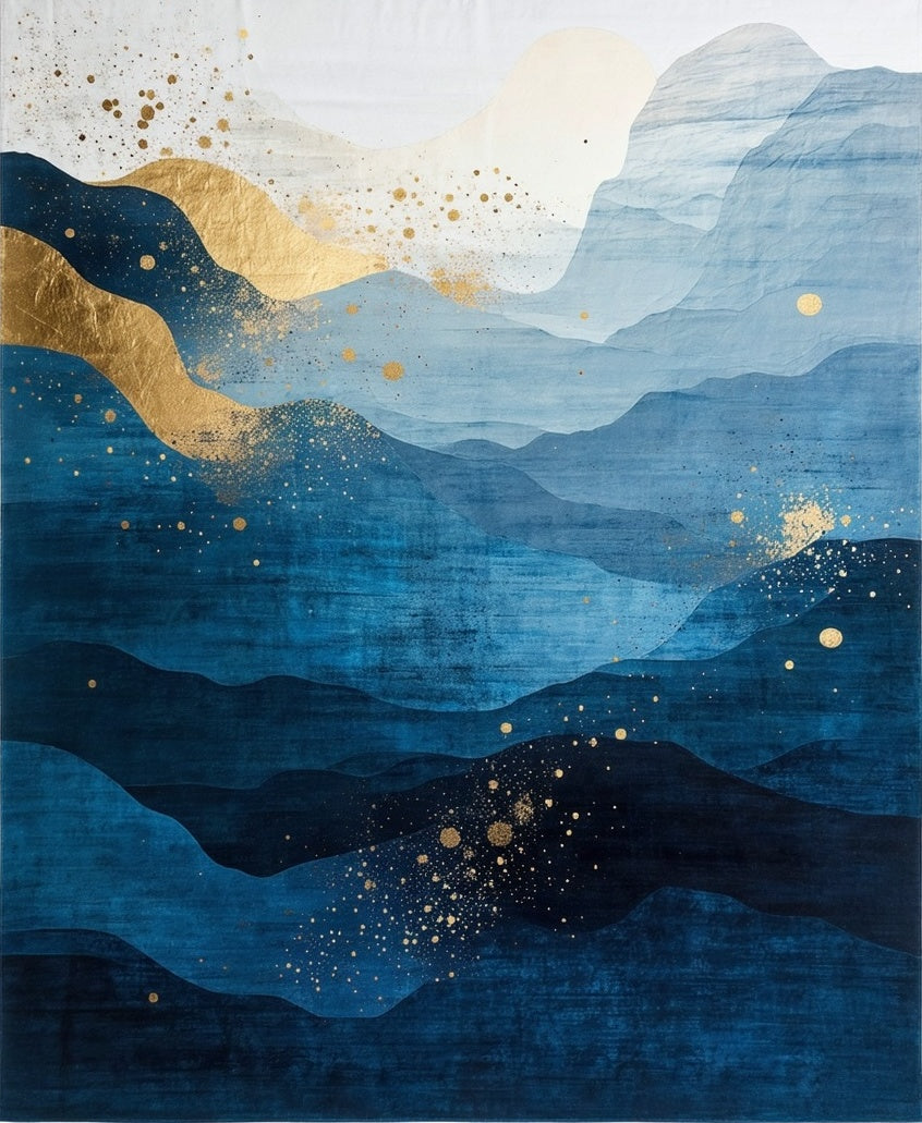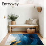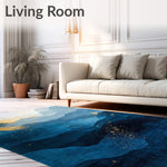 Flatwoven High Traffic Area Rug, Abstract Deep Gradient Gold Brushstroke, Non Slip, Stain Resistant, Washable Area Rugs for Living Room, Bedroom (Blue) Overview: