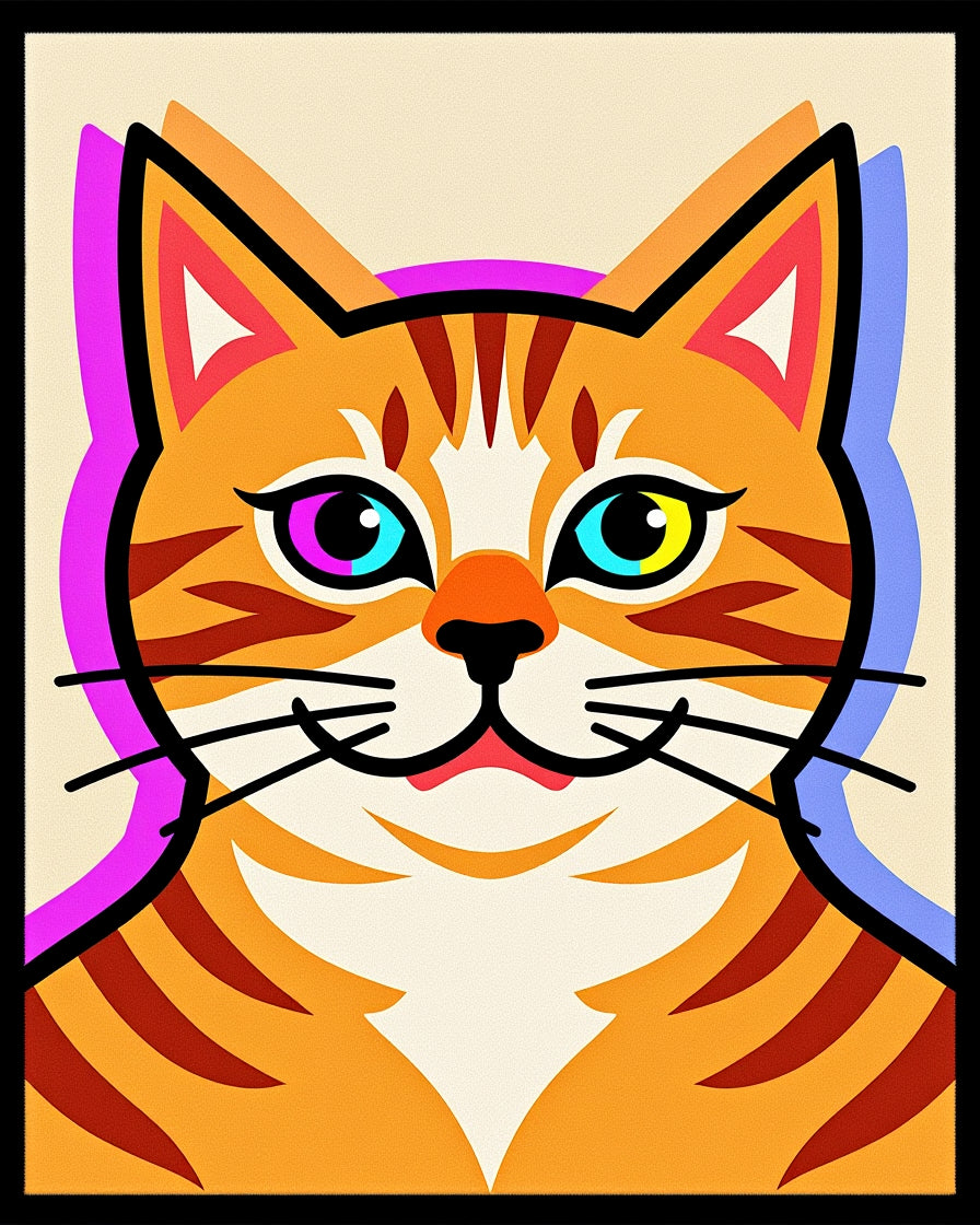 Abstract Cat Face Mosaic with Glowing Edge Trim Holiday(Orange)